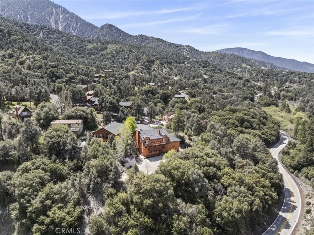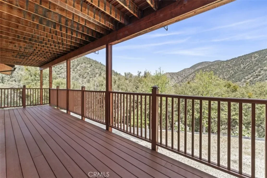 Outdoor spaces include a fire-mitigating sprinkler system and multiple areas to enjoy the surrounding mountain and forest views.