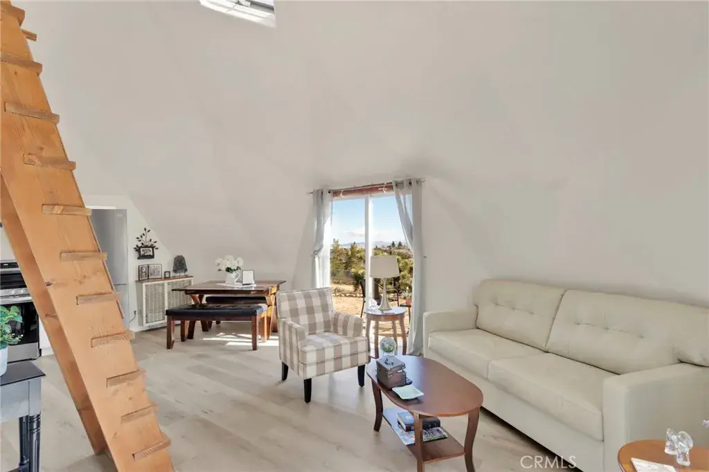 SPECTACULAR MOUNTAIN, DESERT AND CITY VIEWS!!! ENJOY THE FRESH MOUNTAIN AIR. JUST MINUTES AWAY FROM THE RESORT TOWN OF WRIGHTWOOD. CLOSE TO PAVED HIGHWAY 138. GREAT FOR COMMUTERS. Adorable one bedroom plus loft home. Move in ready. Kitchen with new stove, dishwasher and refrigerator. Bright kitchen with lots of storage and dining area. Living room with sliding glass door. One full bath. Laundry room with storage. Fresh interior paint, fixtures, lighting and flooring. New water heater and newer windows. Loft could be second bedroom/sleeping area. Skylights. Enjoy the views from the deck. 1.25 acres with shed. Make this your weekend retreat or cozy home!!