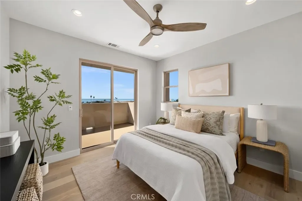 The primary suite is a private retreat with direct deck access and serene ocean vistas. The spa-like ensuite bath features a walk-in shower with built-in seat, dual-sink vanity, private water closet, and a spacious walk-in closet. A ceiling fan enhances comfort year-round. Completing the upper level are a stylish powder room and a dedicated laundry room with convenient sink and additional storage.