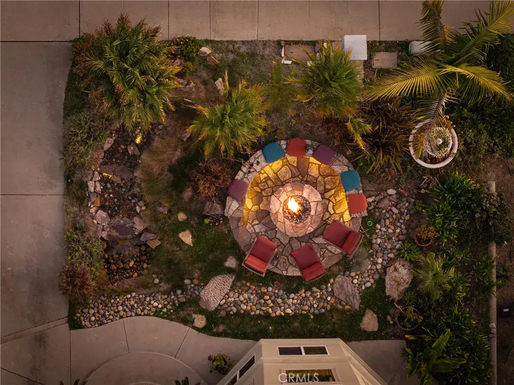 The oversized office includes a wet bar with leathered granite countertops and custom built-in cabinetry, ideal for a home office, media room, or guest retreat. Outdoor living shines with a custom front-yard waterfall and gas fire pit, while the backyard boasts a large Trex deck overlooking peaceful open space and wildlife. The outdoor beach shower, jacuzzi hot tub and large storage shed add even more value.