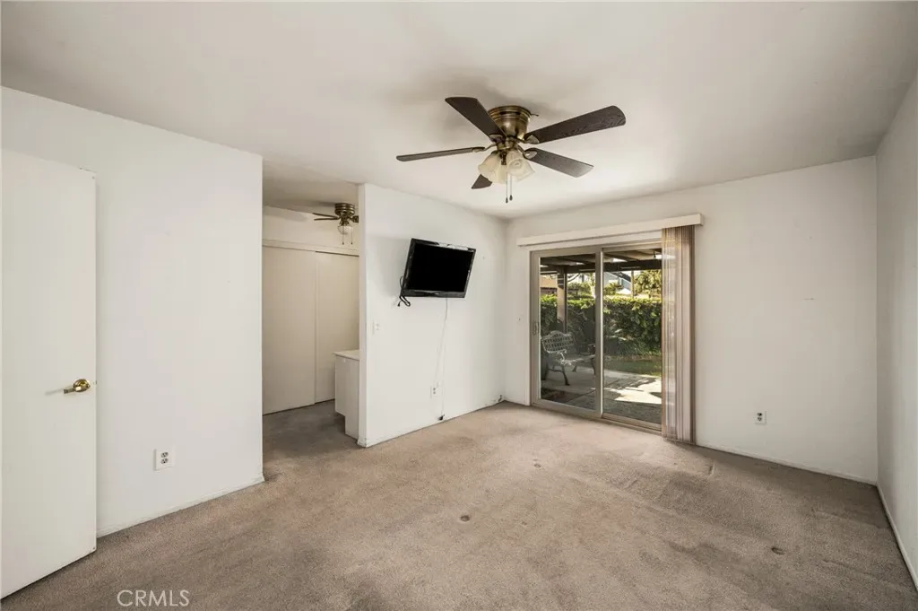 The open kitchen flows nicely into the dining area, making it ideal for gatherings and family meals. Ceiling fans are installed in all bedrooms for added comfort. The primary suite offers direct access to the backyard through a sliding glass door and features two closets in the primary bathroom, providing excellent storage.