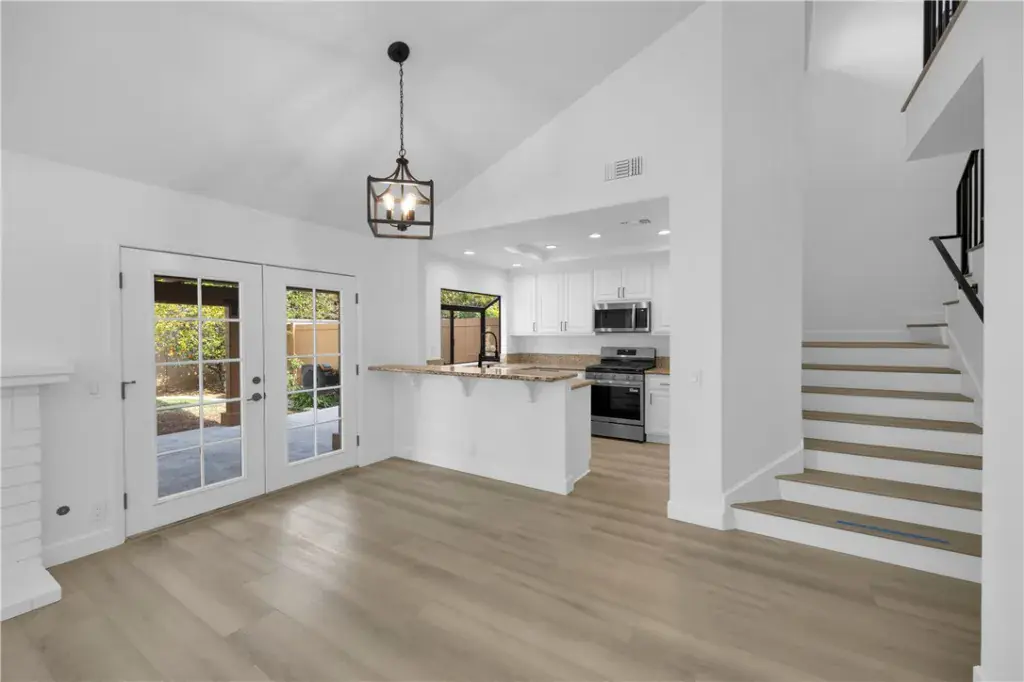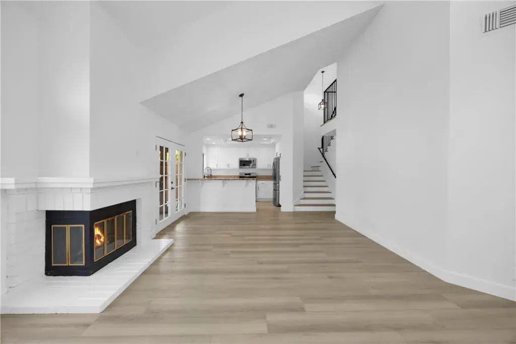 Welcome home to Las Brisas! This beautifully remodeled 3-bedroom, 3-bath residence offers 1,470 square feet of thoughtfully updated living space in one of Placentia’s most desirable communities. This dream lease showcases a full, gorgeous remodel —no detail overlooked and no disappointment in sight—including gorgeous luxury vinyl plank flooring, LED lighting, new 2 panel doors & matte black door hardware throughout, moldings and window sills throughout, and updated electrical, HVAC, and plumbing systems throughout. The inviting family room features vaulted ceilings and a cozy fireplace with brick hearth and mantle, creating the perfect space to relax or entertain. The adjacent dining area sparkles with a statement chandelier and opens to the backyard, seamlessly blending indoor and outdoor living.The remodeled kitchen is both stylish and functional, offering granite countertops, new stainless steel appliances, trash compactor, and new matte black plumbing fixtures and cabinet pulls. A downstairs bedroom with new ceiling fan, mirrored wardrobe doors w/ soft closing hardware, and window blinds provides flexibility for guests or a home office. The downstairs bathroom has been beautifully updated with quartz countertops, new fixtures, and a walk-in accessible shower. Upstairs, the home continues to impress with a new wrought iron stair railings brought to code, a spacious secondary bedroom with ceiling fan and ample storage, and a remodeled hall bathroom featuring a tub/shower combo, quartz countertops, new cabinetry, and modern fixtures. The primary suite is a true retreat with cathedral ceilings, ceiling fan, generous closet space, and a spa-inspired bathroom complete with quartz countertops, dual sinks, new cabinetry and fixtures, a walk-in closet with built-in system, and a shower with newly installed sliding glass doors. Additional highlights include a 2-car attached garage with new lighting, washer, dryer, and secondary refrigerator, plus a private backyard featuring a newly rebuilt patio cover with skylight and new lighting and a tranquil pond—perfect for relaxing or entertaining. The Las Brisas community amenities are exceptional, offering a pool, spa, and possible RV parking (subject to availability). Ideally located near shopping, dining, and commuter routes, this home delivers comfort, style, and convenience in one impressive package. A rare opportunity to lease a turnkey, remodeled home—this one truly has it all.