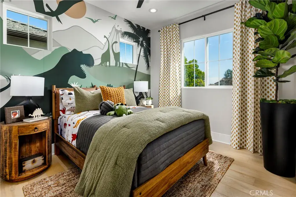 The Elina Model Home – home design offers an alluring mix of elegant design and functional living spaces. Entering through the foyer, you are greeted by an inviting open floor plan that seamlessly connects a two-story great room, casual dining area, and gourmet kitchen that features a central island with breakfast bar, wraparound counter and cabinet space, and a spacious pantry. On the second floor. The luxurious primary suite boasts a coffered ceiling, dual sinks in the primary bathroom, a luxurious shower, and a separate soaking tub. Additional highlights include secondary bedroom suites that feature roomy closets and a shared hall bath, a laundry room conveniently located on the bedroom level, and a gorgeous outdoor living area ideal for enjoying beautiful weather. House is furnished, backyard completed with pool and outdoor fireplace. Solar System included. Move in Ready Condition. Estimate delivery time is Summer 2026