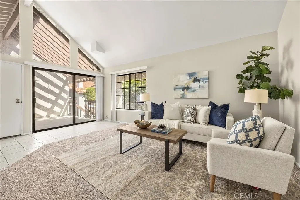 As you step inside, you’ll be greeted by soaring cathedral ceilings that enhance the spacious living room. A large sliding glass door opens to an expansive front patio—perfect for relaxing or entertaining.
