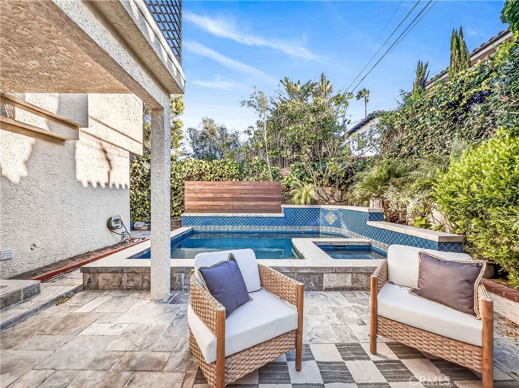 Outdoor spaces transform the property into a true coastal retreat. The welcoming front patio, anchored by a warming gas firepit, invites year-round gatherings in the coastal air. The backyard offers a heated saltwater pool, spa, and well-designed space to relax, entertain, or play. A gated front yard, backyard, and dedicated dog run provide privacy and room for pets to roam.