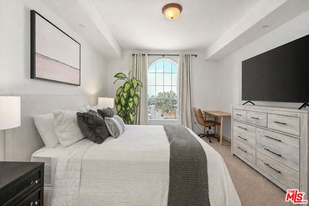 Welcome to 12975 Agustin Place #418, a stunning top-floor corner residence in Playa Vista’s highly sought-after Carabela community. Bathed in natural light from its prime north-west exposure, this beautifully updated home offers an exceptional blend of comfort, style, and convenience. A formal entry leads into a bright and airy living room featuring soaring ceilings, a cozy gas fireplace, and seamless access to a spacious private balcony perfect for enjoying breathtaking city views and golden-hour sunsets. The open-concept layout flows effortlessly into a well-appointed kitchen, complete with stainless steel appliances, granite countertops, upgraded fixtures, and abundant storage. The adjacent dining area serves as a natural extension of the space, ideal for both casual meals and entertaining, with additional bar seating for added versatility. This thoughtfully designed home features two generously sized bedrooms, offering flexibility for guests, a home office, or both. The guest bathroom has been tastefully refreshed with updated hardware, shelving, and a modern vanity. The primary suite is a serene retreat, filled with natural light and complete with a spacious walk-in closet and a dual vanity bathroom. Additional highlights include a brand new in-unit washer and dryer, recessed lighting, double paned windows, and the privacy and tranquility of a top-floor corner location. Ideally situated just moments from Concert Park, Whole Foods, Cinemark, The Resort gym and pool, and an array of dining, shopping, and outdoor spaces, this home offers the very best of Playa Vista living.