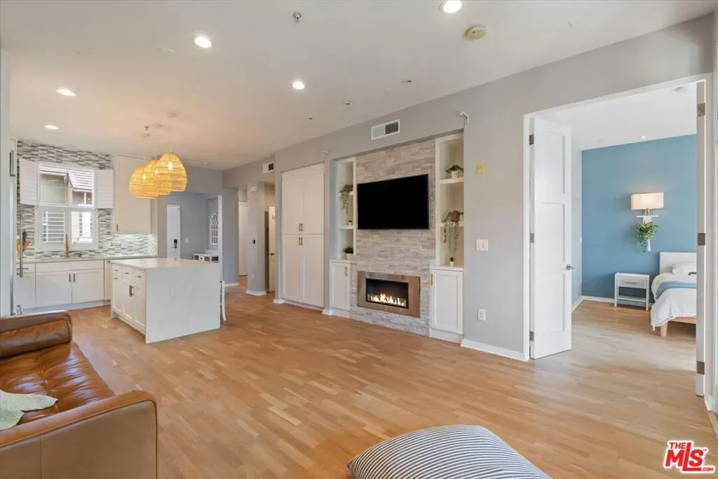 Set atop one of Playa Vista’s most coveted addresses, this sunlit penthouse at 13020 Pacific Promenade, Unit 401, offers a rare fusion of refined design, effortless comfort, and coastal sophistication. Encompassing over 1,300 square feet, this fully furnished two-bedroom, two-bath residence delivers an elevated lifestyle framed by soaring 10-foot ceilings and an expansive open-concept layout. At the heart of the home, a chef-caliber kitchen showcases a curated suite of premium appliances, Sub-Zero refrigeration, Viking cooking suite, and Miele dishwasher, complemented by a striking custom waterfall island adorned with Turkish marble and intricate inlay. The living area, anchored by a sculptural stone fireplace, flows seamlessly onto a rare 200-square-foot covered balcony, an inviting extension of the home where tranquil bluff views create a daily backdrop of calm. The primary suite is a private sanctuary, thoughtfully appointed with a Japanese joinery king bed, a luxurious Nest Bedding mattress, and a spa-inspired ensuite featuring Turkish marble finishes, a multi-function Moen shower system, and a sleek TOTO toilet. Every detail evokes a sense of quiet indulgence. A versatile second bedroom effortlessly transforms between a guest retreat and a productive workspace, featuring a queen Murphy bed and a built-in desk, with convenient access to a full bath ideal for modern living. Additional enhancements include an in-unit Electrolux washer and dryer, keyless entry, and secure gated tandem parking for two vehicles, complete with a dedicated 240V EV outlet and Tesla charger. This offering extends beyond the residence itself. Monthly rent includes exclusive access to Playa Vista’s premier amenities, including The Resort’s state-of-the-art fitness center and pool, the Centerpointe Club, and an array of parks, courts, and scenic trails all within a secure, master-planned community. Perfectly positioned within walking distance to Playa Vista’s many restaurants, Whole Foods, Starbucks, and Cinemark, and just moments from Silicon Beach’s leading innovators, including Google, Meta, and Microsoft this residence places the very best of Los Angeles within effortless reach, from the shores of Venice Beach to the convenience of Los Angeles International Airport. Minimum 660+ credit score required, with income at least 2.5x the monthly rent.