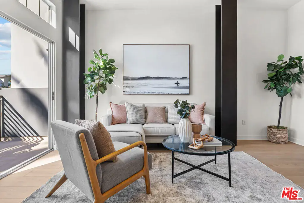 Beautifully refreshed and stylishly upgraded townhome in the coveted Bridgeway Mills community of Playa Vista. Step inside to an airy, open-concept living space with soaring ceilings and abundant natural light, where the industrial feel of exposed beams and ductwork meets a sleek, modern aesthetic. This home has been extensively updated, featuring brand-new flooring, fresh interior paint, refinished cabinetry, new LED lighting, and several new windows that enhance light and energy efficiency. Enter directly from your private, oversized 3-car garage or from the large front patio that creates a welcoming urban entry. The main level includes a spacious great room with flexible living and dining areas framed by front and rear windows, perfect for everyday living or entertaining. The kitchen is both functional and refined, offering stainless-steel appliances, stone countertops, and custom refinished cabinetry with ample storage. Continue upstairs to a large, bright loft with a private balcony that makes a perfect creative or office space, or could be easily enclosed to make a third bedroom. The loft shares a full bathroom with a secondary bedroom on this level. The top-floor primary suite serves as a private retreat with vaulted ceilings, generous walk-in closet, and a spa-inspired bath featuring dual sinks, a soaking tub, and separate shower. Step out to the private 3rd floor deck with a cozy fireplace, ideal for morning coffee or evening relaxation under the coastal sky. Enjoy the exceptional Playa Vista lifestyle, including resort-style amenities such as fitness centers, pools, parks, sports courts, restaurants, Whole Foods, Runway retail, and proximity to Silicon Beach’s leading employers, LAX, LMU, and the beach. This home is a perfect blend of sophistication, comfort, and convenience in one of Los Angeles’ most dynamic communities.