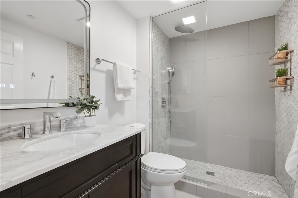 Spacious, bright, and stylish in Playa Vista! This stunning home has been meticulously upgraded with designer finishes throughout. A dramatic entry opens to an airy great room featuring your freshly renovated kitchen, generous living and dining area, updated powder room, and expansive outdoor patio with custom tilework. Just off the kitchen, a versatile bonus space with sliding doors offers the perfect setup for a home office, large pantry, or flexible storage area. Upstairs, the Primary Suite offers a walk-in closet, private balcony, and spa-like en-suite bathroom with dual vanities, soaking tub, and glass shower. The upper level also features a second en-suite bedroom and spacious laundry closet. Set within the vibrant Playa Vista community, residents enjoy access to two pools, a dog park, playgrounds, sports facilities, and more. Beautifully upgraded and priced to sell, this condo is a rare offering. Come see it and submit your offer today.