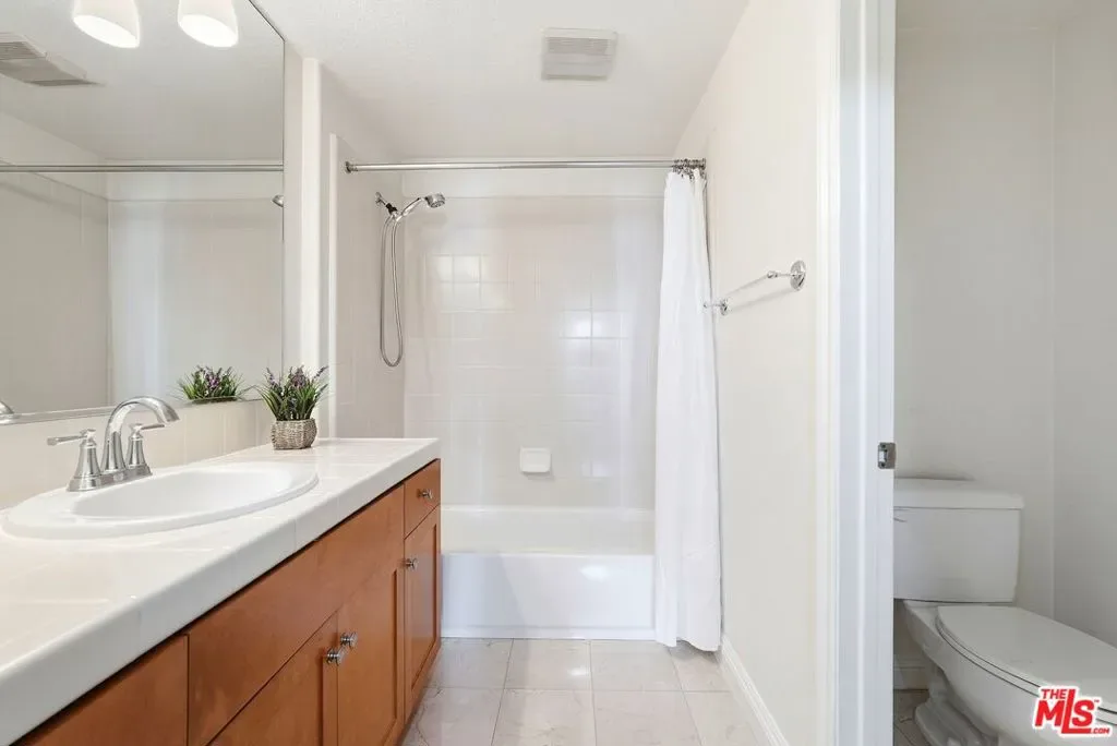 Discover elevated coastal living in this stunning top-floor penthouse in the highly sought-after Paraiso community of Playa Vista. Offering 3 bedrooms and 2.5 bathrooms across 2,202 square feet, this exceptional residence blends volume, light, and modern sophistication. Enter on the main level to a dramatic living room filled with natural light, highlighted by high ceilings, a cozy fireplace, and a generous balcony with serene exterior views. The open-concept layout flows effortlessly into the dining area and chef’s kitchen, thoughtfully designed with stainless steel appliances, abundant cabinetry, expansive counter space, and a breakfast bar ideal for casual dining and entertaining. The lower level provides a private sanctuary with two well-appointed bedrooms and two bathrooms. The oversized primary suite features a walk-in closet, and a spa-inspired en-suite bath complete with dual vanities, a soaking tub, and a glass-enclosed shower. A spacious guest bedroom and guest bath, and its own private balcony. Additional highlights include side-by-side laundry, abundant windows throughout, custom built-ins, and two designated parking spaces. Enjoy the best of Playa Vista living with access to premier community amenities including The CenterPointe Club, The Resort, and shopping and dining at Runway at Playa Vista. This is penthouse living at its finest–where luxury, comfort, and convenience meet.