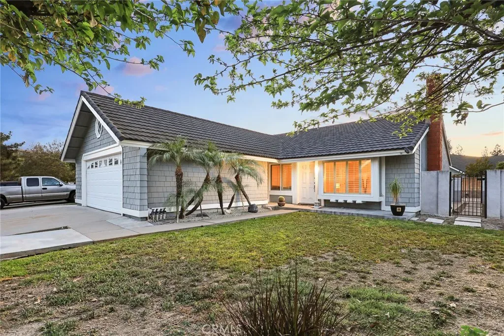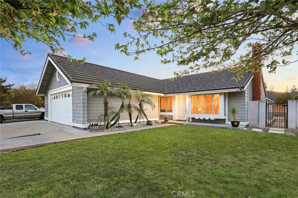Single-Story Corner Lot • Maximum Privacy • Beautifully Upgraded Throughout. Discover this impeccably upgraded single-story home on a spacious corner lot. Offering maximum privacy and peaceful living, this 4-bedroom, 2-bathroom residence spans approximately 1,589 square feet and has been thoughtfully designed with modern upgrades. Inside, you’ll find a completely remodeled kitchen featuring sleek black countertops, a generous breakfast island, and premium cabinetry. Both bathrooms have also been beautifully remodeled. The entire home boasts brand-new flooring throughout, giving it a fresh, clean look. A striking blue exterior with tropical palms creates standout curb appeal, while the brand-new metal composite roof ensures years of worry-free protection. Additional recent upgrades include a new HVAC system and condenser installed just four years ago, a fully upgraded water heater, and improved plumbing that now runs from the garage line to the second bathroom. The warm living room with fireplace flows nicely into the kitchen and then to the low-maintenance backyard with a concrete patio, perimeter grass, and elevated fire pit area—perfect for entertaining. Bright windows and skylights keep the home light and airy. Located near top-rated schools, Cal Poly Pomona, Costco, parks, and freeways, this turnkey home delivers comfort, style, and peace of mind. It’s truly move-in ready and won’t disappoint!This is more than a house—it’s a true sanctuary ready to welcome you home