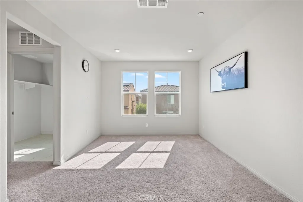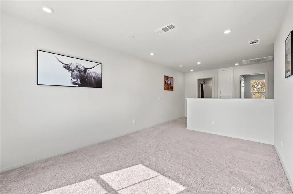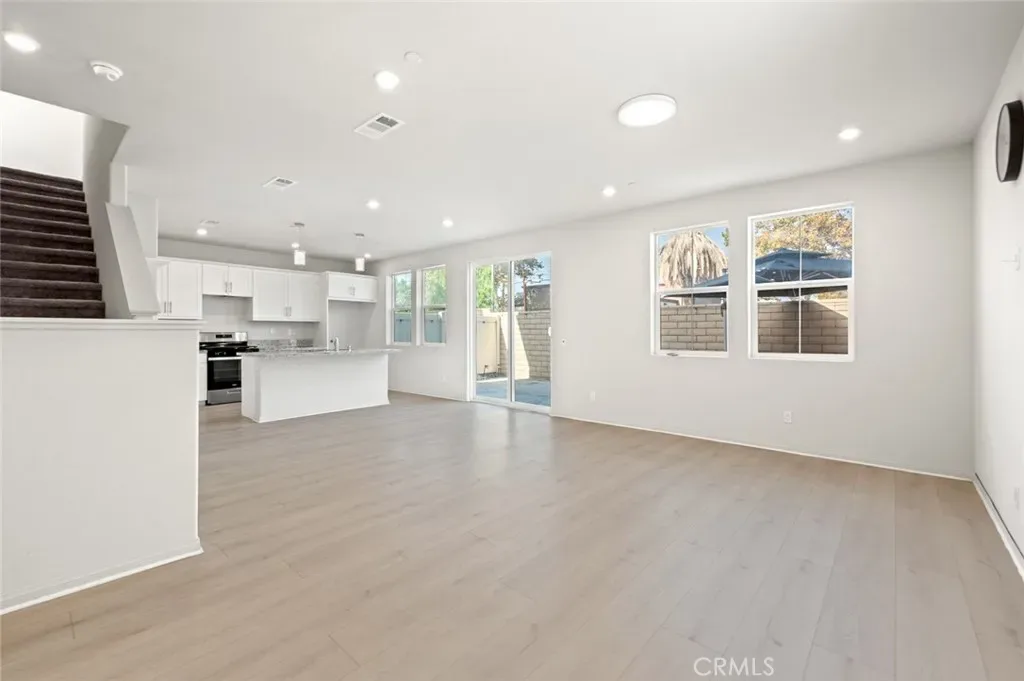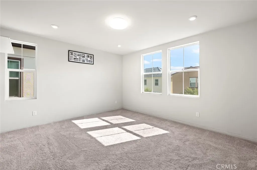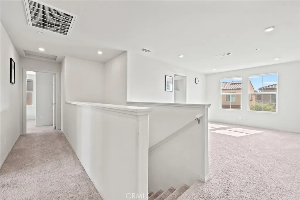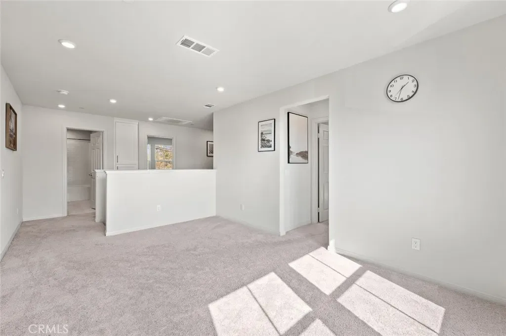The home boasts an open-concept layout that combines the living room, dining area, and kitchen into a bright and welcoming space. Sliding glass doors open to the backyard, inviting ample natural light indoors. A sizable loft on the second floor offers versatile options for a home office, playroom, or additional lounge area.