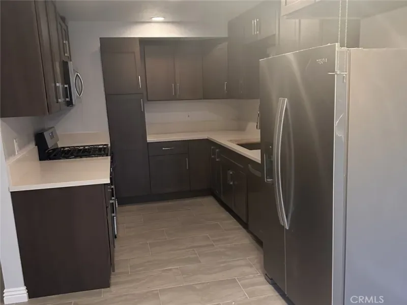The updated kitchen is designed with both function and style in mind, complete with stainless steel appliances, a dishwasher, and ample cabinetry. Adjacent living and dining areas flow seamlessly, creating an open and airy atmosphere.