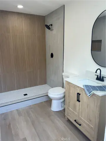 The fully updated kitchen features new sleek white/green shaker cabinets with island, quartz countertops, designer backsplash, new hardware, and new high end appliances. Both bathrooms have been fully renovated with custom tiled showers, new vanities, and modern plumbing fixtures and a tankless water heater..