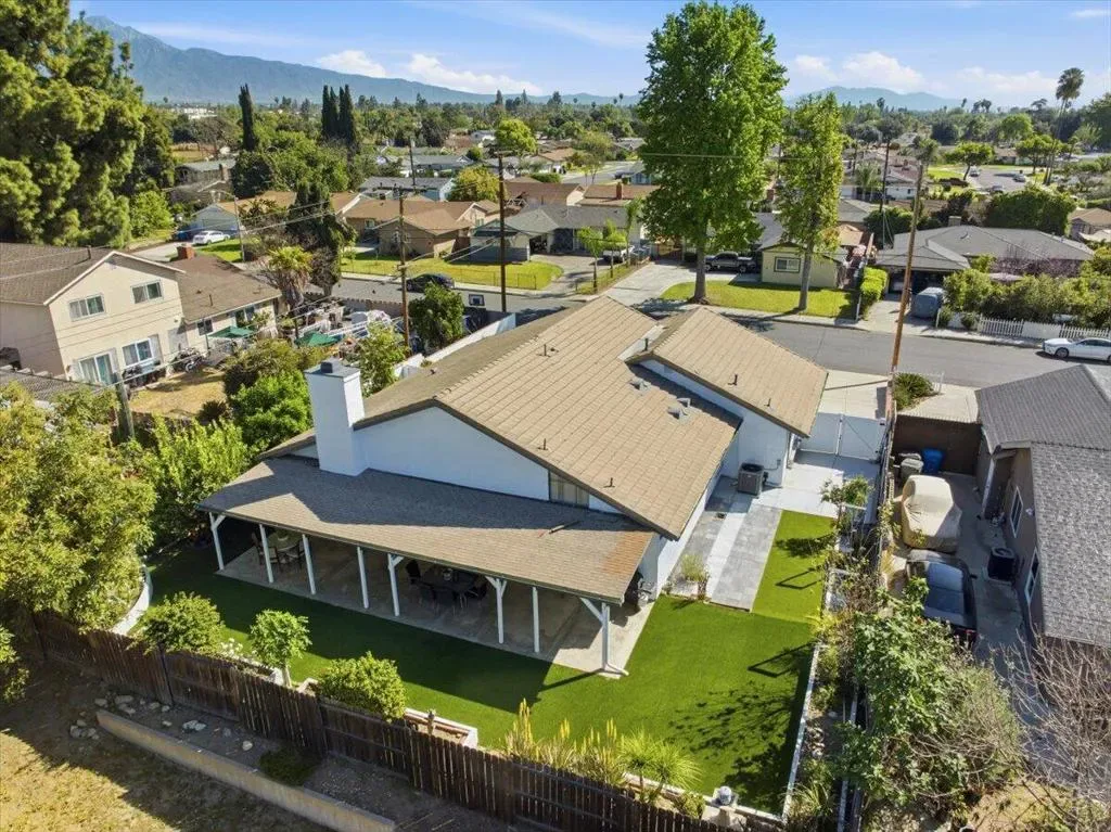 Introducing a captivating and meticulously maintained by original owners, this residence perfectly marries elegance and comfort. This 4-bedroom, 2-bath sanctuary in Pomona spans 1,744 sqft, expertly designed for the discerning homeowner. The home welcomes with a charming step-down living room, beneath soaring vaulted ceilings, which seamlessly flows into an elegant dining area, offering a gracious space for sophisticated entertaining. The heart of the home features an inviting kitchen and family room, designed in an open-concept style that encourages effortless living and engagement. Both rooms exude warmth, enhancing everyday moments with their functional yet stylish layout.Enhancing the seamless flow between indoor and outdoor living, both the family room and the primary bedroom feature exquisite French doors, gracefully leading to the patio. This expansive outdoor space, equipped with a length-of-the-home patio cover, becomes an ideal setting for hosting or unwinding while enjoying the starry evenings.The residence is designed with understated sophistication, visible in its superior layout that smoothly transitions to the serene backyard paradise. Here, meticulously crafted synthetic grass provides an evergreen canvas for relaxation, complemented by a delightful collection of fruit trees for seasonal enjoyment.From the front of the home, take in the sweeping mountain views that enrich the property with a sense of tranquil majesty. With the added convenience of RV parking behind the side gate, this home effortlessly caters to adventurous spirits and their journeys. Ideally positioned, this residence offers both serene privacy and immediate access to Pomona’s vibrant shopping, culinary delights, and schools as well as seamless connectivity to major freeways. Life is rendered effortlessly elegant in this masterful architectural work, where every detail is curated for an elevated lifestyle.