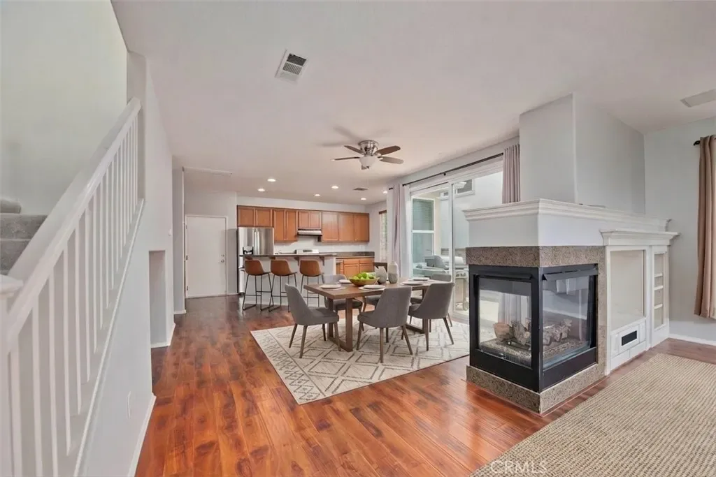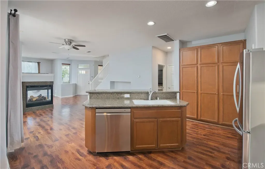 The open-concept floor plan features a fantastic cook’s kitchen with a breakfast bar, abundant cabinetry, generous storage, and pantry space. The living room offers a cozy dual-sided fireplace, built-in media niche, and a welcoming dining area—perfect for both everyday living and entertaining. Also a nice side patio for BBQing and relaxing