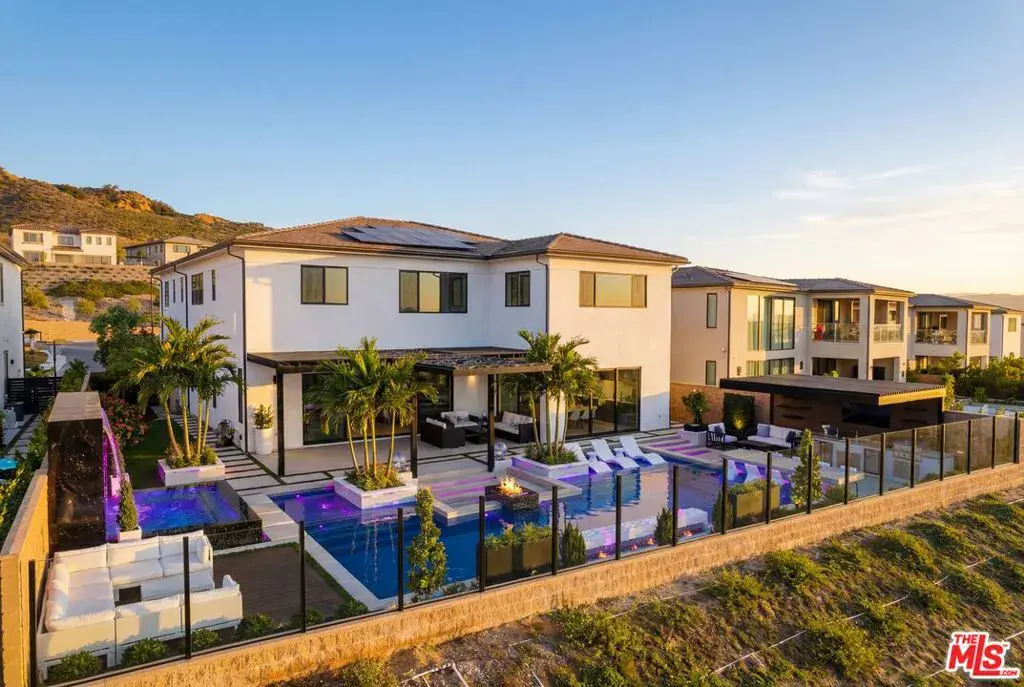 Luxury Living in Guard-Gated Westcliffe. Welcome to this move-in-ready luxury residence located in the prestigious guard-gated Westcliffe community. Offering approximately 5,000 sq. ft. of sophisticated living space, this 5-bedroom, 5.5-bath home is filled with top-tier upgrades and thoughtful design elements throughout.A striking floating staircase sets the tone upon entry, complemented by expansive 20′ x 9′ sliding doors on the first floor that create seamless indoor-outdoor flow. The oversized primary suite provides a true retreat, enhanced by its generous layout and elevated finishes. An enclosed California room expands the living footprint even further, featuring a custom-designed bar area tailored specifically for the space perfect for entertaining and year-round enjoyment.Every detail has been meticulously upgraded: premium flooring, a designer kitchen, and spa-quality bathrooms. The home is fully prewired with built-in speakers and connected to a Sonos system for whole-home audio. Custom Shade Store blinds and curtains, including automated window treatments, pair beautifully with custom chandeliers and refined moldings throughout. Organization is elevated with fully customized cabinetry by California Closets and Inspired Closets, extending to the upstairs media room. Located on a wide, quiet street, the property showcases gorgeous panoramic city and canyon views, offering a stunning backdrop for both everyday living and entertaining. A rare opportunity to own a highly upgraded, turnkey home in one of the area s most sought-after gated communities. Backyard plans are fully approved with HOA and shovel ready.