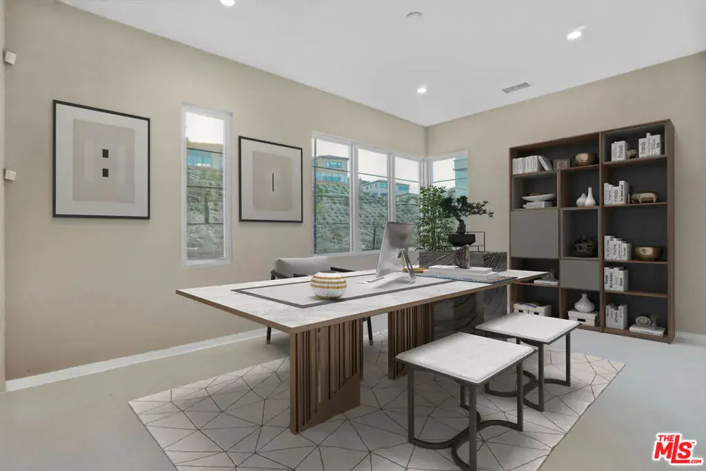 Welcome to this remarkable, luxury three story estate ,”Santi Model” nestled in the prestigious Westcliffe community of Porter Ranch Hills. The design seamlessly combines elegance and practicality, creating inviting spaces ideal for both relaxed family gatherings and sophisticated entertaining. With exquisite finishes, expansive layouts, and carefully selected amenities, every inch of this home has been crafted to offer a refined living experience, ensuring both residents and guests enjoy the perfect balance of comfort and luxury. As you approach, the impressive facade offers a glimpse of the elegance inside. Upon entering, you’ll be struck by the grand open-concept design, with soaring ceilings that span all three levels, creating an overwhelming sense of space and grandeur. The oversized stacking doors seamlessly connect the indoor living areas with the outdoors, flooding the interior with natural light and framing breathtaking panoramic views of the city and mountains. This feature not only enhances the visual appeal but also offers a serene backdrop to everyday life. From the stunning flooring to the bespoke cabinetry, every detail has been meticulously crafted to create a harmonious and luxurious atmosphere. The gourmet kitchen is truly a chef’s paradise, boasting a spacious island that serves as both a practical workspace and a hub for socializing. Equipped with high-end WOLF and SUBZERO appliances, sleek stone countertops, and ample storage, it’s designed for both culinary creativity and effortless entertaining. Additionally, a second kitchen provides the perfect setup for a private chef, adding an extra level of convenience and sophistication. Escape to the luxurious primary suite, a serene retreat featuring breathtaking views, a charming outdoor patio with a cozy fireplace for cool evenings, and a spa-inspired bathroom complete with a spacious walk-in shower. Each of the generously sized bedrooms is thoughtfully designed to ensure both comfort and privacy, offering large closets and easy access to beautifully upgraded bathrooms. Step outside to discover a sprawling backyard with limitless potential to create your own resort-style oasis. For movie lovers, the private theater room offers the perfect environment to enjoy films in comfort. Fitness enthusiasts will appreciate the dedicated gym room, while those in need of a home office will find the elegant workspace both inspiring and functional. The top floor is designed for next-level entertaining, featuring its own private bathroom and shower for added convenience. Stacking doors open up to a balcony with spectacular views of the city lights, providing an enchanting setting for evening gatherings. Whether it’s a lively party or a quiet evening, this versatile space enhances the overall appeal of the estate. This home is thoughtfully equipped with custom speakers and Wi-Fi hot spots throughout, enhancing both its aesthetic appeal and overall comfort. Solar panels further boost energy efficiency, making this estate as sustainable as it is luxurious. Offering an unmatched living experience, this one-of-a-kind property is truly a must-see. Schools close by: Sierra Canyon, PRCS. Walking distance to shops, restaurants, movie theater, parks, golfing and grocery stores. Schedule your private tour today!