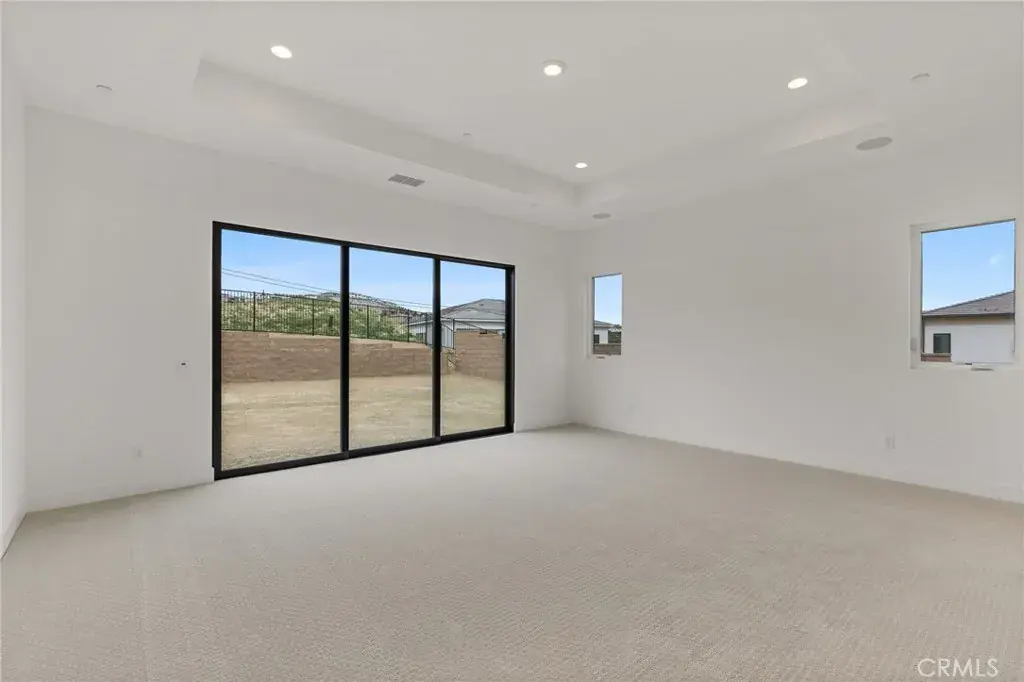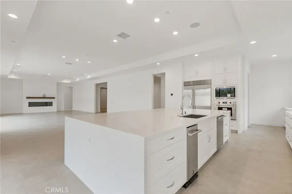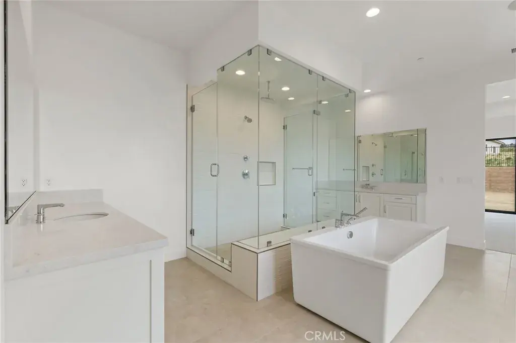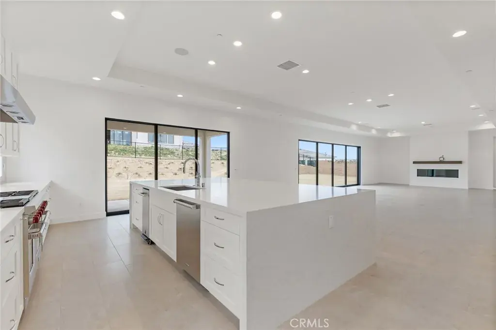 Welcome to The Ridge at Bella Vista, the final community within the prestigious Porter Ranch master plan. If you have been waiting for a rare single-story equestrian homesite offering exceptional land, privacy, and space—your search ends here. The Ridge is now down to its final seven one-story homes, making this a truly limited opportunity. The Saddleback floor plan is the largest single-story design available, thoughtfully crafted with expansive living areas, a flex space, and a formal dining room. A welcoming covered entry and elegant foyer lead past the dining room into a stunning great room and casual dining area, highlighted by 11-foot coffered ceilings and breathtaking views of the luxury outdoor living space. 20’ x 8’ multi-stacked doors open to a vast backyard showcasing rustic canyon vistas and natural surroundings. The gourmet kitchen is designed for both entertaining and everyday living, featuring a large center island with breakfast bar, abundant counter and cabinet space, and a spacious walk-in pantry. Designer upgraded craftsman style Alabaster cabinets throughout the home. The great room is anchored by a striking 72-inch linear gas fireplace, creating a warm and inviting atmosphere. The private primary bedroom suite offers a true retreat, complete with a coffered ceiling, 12’ x 8’ stacking doors opening to the backyard, an oversized walk-in closet, and a spa-inspired bath. The luxurious primary bath includes a ceiling-mounted shower head, dual-sink vanity, soaking tub, expansive shower with seating, and a private water closet. Secondary bedrooms are generously sized, each with ample closet space and private full baths. Additional highlights include a bright office off the foyer, a convenient powder room, centrally located laundry room, and abundant storage throughout. Situated on nearly half an acre, this exceptional homesite is surrounded by nature and offers a rare sense of tranquility and space. A must-see to truly appreciate the beauty and craftsmanship of this luxury home—Toll Brothers’ final phase in the Porter Ranch master plan.