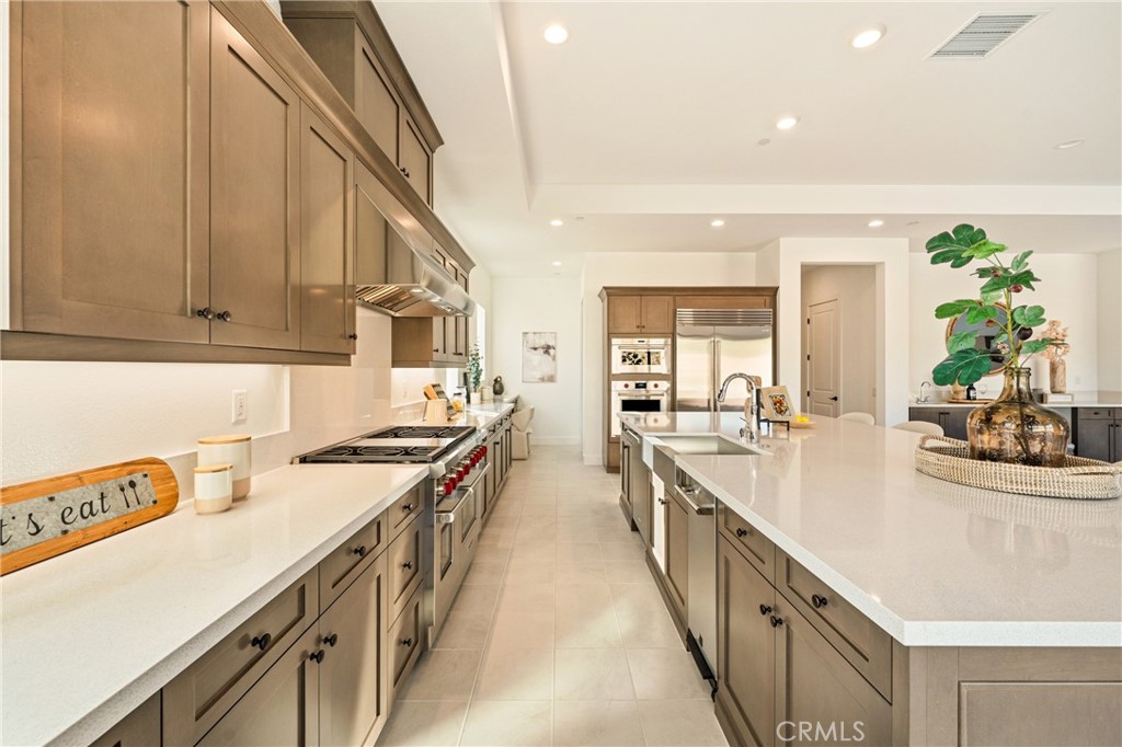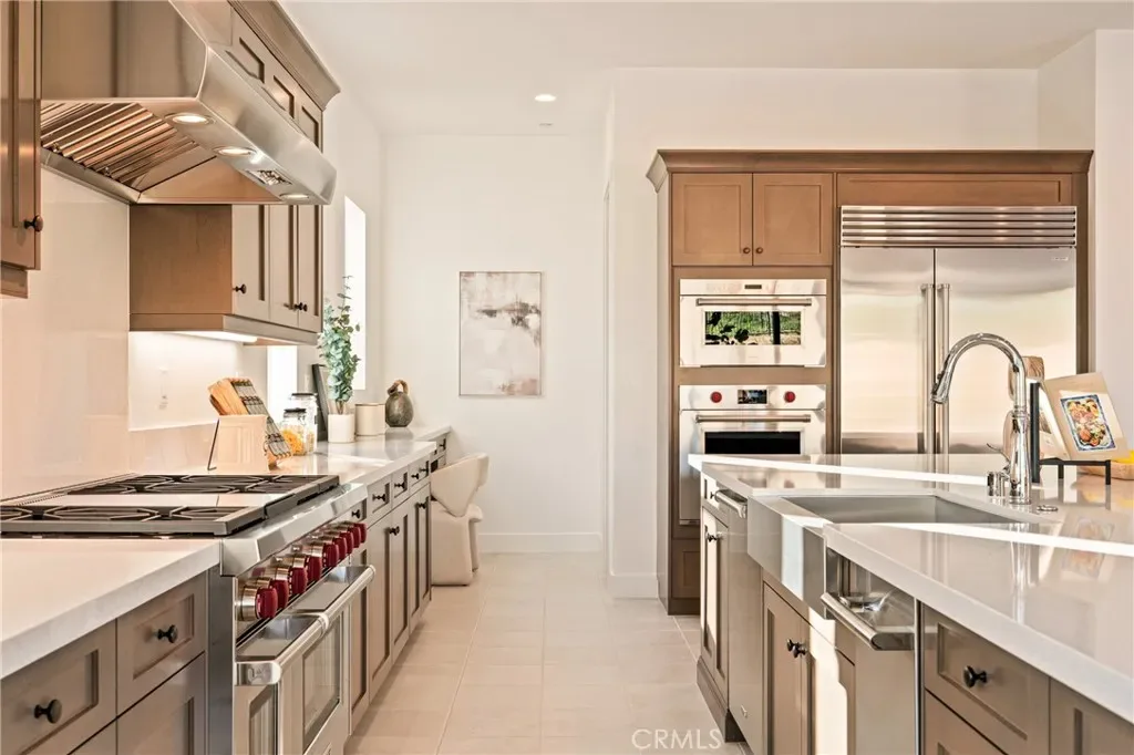 Positioned as one of the most competitively priced homes of the same model within the neighborhood, this property offers exceptional value—over $130,000 in thoughtfully selected upgrades. Designed with both comfort and elegance in mind, the home showcases a highly desirable, symmetrical layout with 4 bedrooms and 4.5 bathrooms. Upon entry, you are welcomed by a balanced dual-wing floor plan, offering privacy and functionality, with two bedrooms on each side and expansive open-concept living spaces at the center. The great room is enhanced by oversized multi-slide glass doors, creating seamless indoor-outdoor flow and allowing abundant natural light to fill the space. A statement fireplace, designer lighting, and a custom wet bar further elevate the home’s entertainment appeal. The chef’s kitchen is equipped with premium Sub-Zero refrigeration and Wolf appliances, complemented by upgraded finishes and thoughtful design details throughout. Additional enhancements include upgraded insulation, electrical and lighting packages, and refined interior selections that contribute to both comfort and efficiency. The spacious primary suite also features upgraded sliding doors, offering direct outdoor access and a tranquil, retreat-like atmosphere. The expansive backyard presents a rare opportunity, offering both immediate usability and future customization potential. With its generous, flat layout, the space is ideal for creating a personalized outdoor environment—whether envisioning a pool, outdoor kitchen, garden, or additional entertaining areas. A covered patio has already been thoughtfully completed, allowing for immediate enjoyment of Southern California’s indoor-outdoor lifestyle, while still leaving ample room to design your ideal backyard. Situated within a quiet, well-maintained community developed by Toll Brothers, residents enjoy a peaceful environment along with close proximity to top-rated schools, parks, and everyday conveniences including Kaiser Permanente, Trader Joe’s, Whole Foods, dining, and entertainment. This is a rare opportunity to own a move-in-ready, upgraded single-story home that combines value, design, flexibility, and location in one of Porter Ranch’s premier neighborhoods.