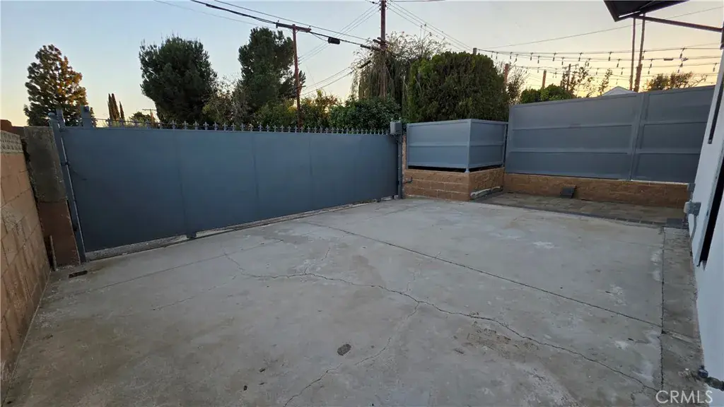 A large automatic sliding gate opens to approximately 480 sq ft of secured hardscape along the side of the property, creating a rare flexible outdoor environment. The space accommodates two side-by-side private parking spots with a Level 2 EV charger, yet can easily function as an extended patio for outdoor dining, play space, or evening relaxation. A separate front patio entry enhances the sense of arrival and privacy.