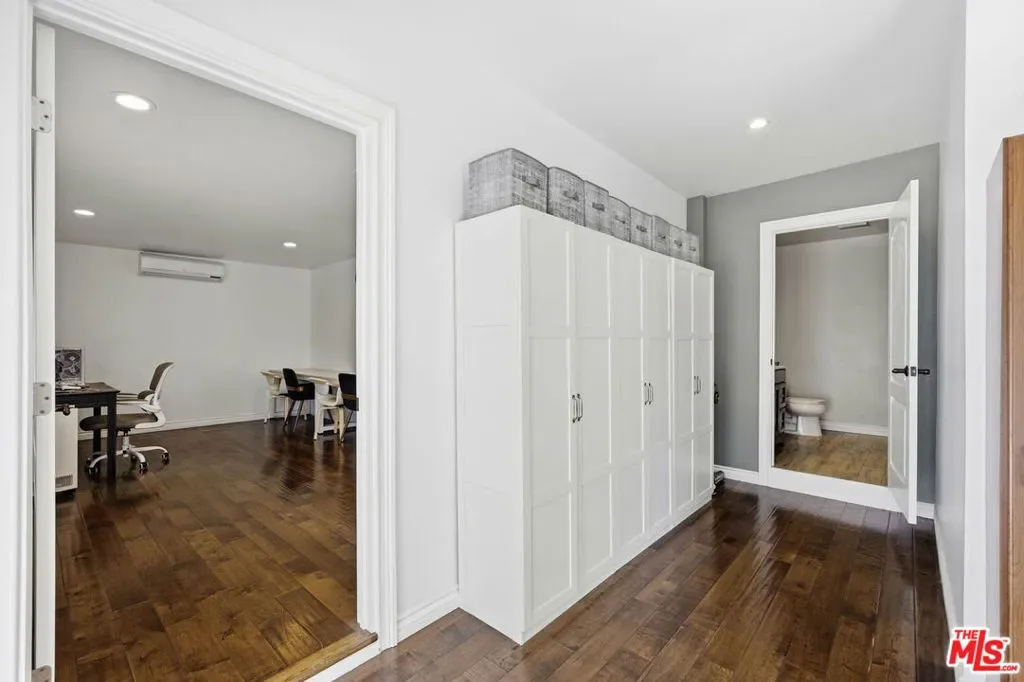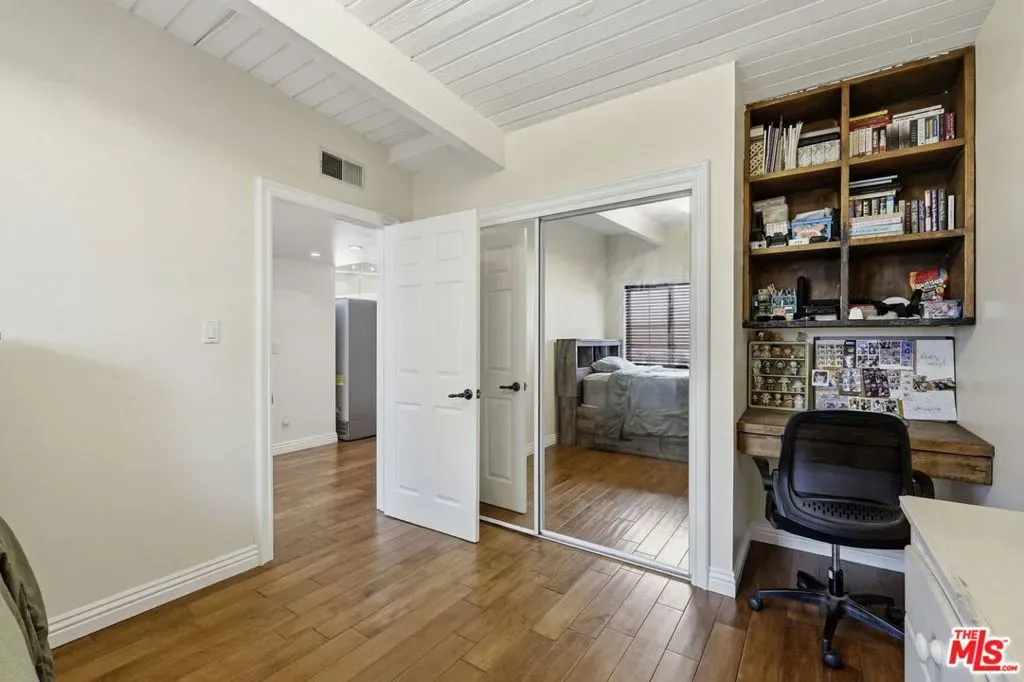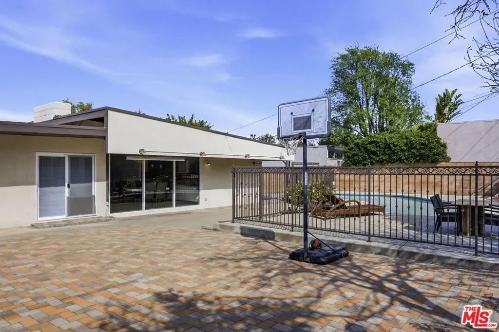 Welcome to 18342 Blackhawk Street, a rare mid-century residence originally designed by notable architects Palmer & Krisel, whose work helped define the modernist residential landscape of Southern California.Situated in a quiet tucked away pocket of Northridge, the home is surrounded by a collection of distinctive mid-century properties that reflect the era’s emphasis on clean lines, indoor-outdoor living, and relaxed California design.Built in 1958, the residence offers 3 bedrooms and 2 bathrooms across 1,565 square feet, along with a generousbonus living area with a walk-in closet,featuring a spacious room and an additional full bathroom. This flexible space may serve as extended living, guest quarters, creative studio, or additional workspace.Set on an expansive 10,104 square foot lot, the property offers generous outdoor space ideal for entertaining, gardening, or further enhancing the home’s mid-century vision.While the interior has evolved over time, elements of the home’s original character remain, offering a unique opportunity for design enthusiasts to thoughtfully restore or reinterpret aspects of Palmer & Krisel’s iconic mid-century aesthetic.Outdoors, the backyard features a large fenced kidney-shaped pool, a classic design element that complements the home’s mid-century character. The yard has been thoughtfully hardscaped with built-in planters and a variety of fruit trees, while the expansive patio area offers ample space for al fresco dining, entertaining, or even a potential sports court, providing flexibility for a variety of outdoor uses.The garage has been finished with drywall, epoxy floors, charging port and an additional spacious storage area with barn doors.Whether you’re drawn to the architectural heritage, the spacious bright home and oversized lot, the pool or the potential to celebrate mid-century design, 18342 Blackhawk presents a compelling opportunity in one of the Valley’s most interesting hidden architectural pockets.