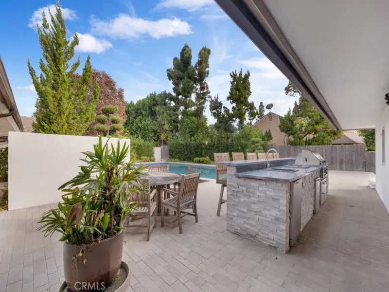 Welcome to this exceptional corner-lot home, perfectly situated on a generous .32-acre lot in one of Porter Ranch’s most sought-after neighborhoods. Surrounded by custom landscaping, this residence offers the ultimate in indoor–outdoor living with a resort-style backyard featuring a large lap pool, separate built-in Jacuzzi, and a built-in BBQ area — ideal for entertaining or relaxing in style. Step inside and experience the thoughtful design and custom accents throughout. The spacious, open-concept kitchen flows seamlessly into the dining and living areas, creating an inviting space for gatherings. The chef’s kitchen boasts ample counter and cabinet space, two brand-new stoves, and two separate ovens, making it a dream for cooking and entertaining. Elegant custom cabinet hardware adds a sophisticated touch to the home’s well-curated design. The family room features a large custom fireplace, adding warmth and charm to the expansive living space. The primary suite is a private retreat with a beautiful ensuite bathroom and peaceful views of the professionally landscaped side patio. Three additional bedrooms share a stylishly full bath, while a fifth bedroom with its own ensuite bathroom—located on the opposite side of the house offers flexibility for guests, a home office, or extended family. Additional highlights include a spacious laundry room with washer and dryer, fresh interior paint, brand-new carpeting, and an attached two-car garage. Enjoy luxury living with easy access to nearby parks, nature trails, premier shopping centers, fine dining, and highly rated schools. This home truly combines comfort, elegance, and functionality—an entertainer’s dream in the heart of Porter Ranch! PLEASE MAKE A NOTE THAT THE FIREPLACE IS DECORATIVE ONLY.