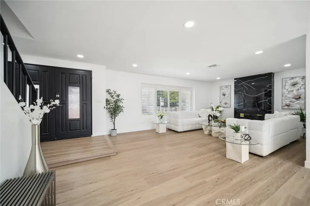 Beautifully remodeled gated home located in a highly desirable Porter Ranch neighborhood. Features include 5 bedrooms and 3.5 updated baths with over 2150 sqft of living space. Walk through the double doors and be amazed what this true beauty has to offer. Large light & bright living room with modern fireplace opens to the dining area, brand new custom kitchen with quartz counters, a pot filler and stainless steel appliances, two large bedrooms and two large bathrooms downstairs, 3 bedrooms and 1.5 baths upstairs, fully finished two car attached garage with direct access, private back yard with pool and so much more. Additional features include new dual pane windows, laminate flooring and recessed lighting throughout, new paint inside and out, updated central A/C and Heat. This is a must see home in a beautiful neighborhood with great schools and just minutes to the Vineyards in Porter Ranch.