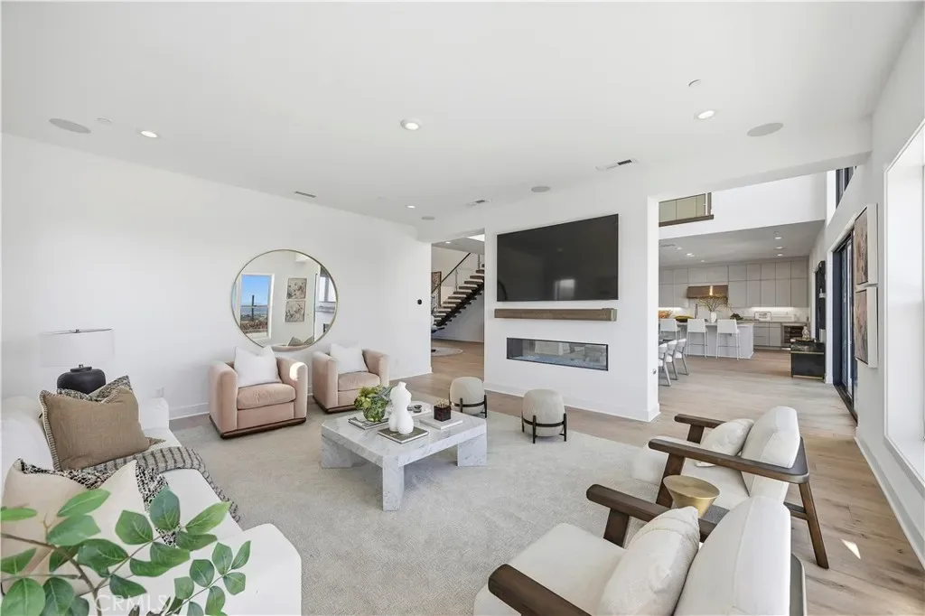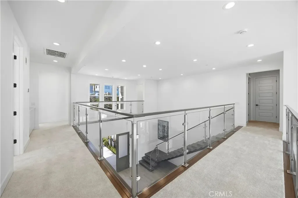 Brand-new, never lived-in estate located in the prestigious guard-gated community of Westcliffe at Porter Ranch. Situated on a premier 10,409 sq ft lot and offering approximately 5,200 sq ft of refined living space, this highly upgraded residence stands apart from typical resales. A grand entry framed by mature palm trees creates an elegant Southern California arrival. The open-concept floor plan features soaring ceilings, wide-plank flooring, expansive glass, a dramatic floating staircase, and a striking double-height glass wall. The chef’s kitchen is appointed with quartz countertops, an oversized island, premium stainless steel appliances, soft-close cabinetry, and a built-in wine refrigerator. The family room opens seamlessly to the backyard through multi-panel sliding doors. The newly completed backyard showcases a custom saltwater linear pool with elevated spa, professional landscaping, and mountain views — delivering a true resort-style setting. Additional upgrades include integrated surround sound and enhanced security system. Located within a secure guard-gated enclave, close to The Vineyards shopping center, reputable private schools, award-winning public schools, and convenient access to the 118 & 405 freeways.