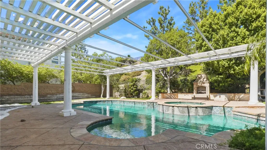 Well-maintained, luxury home5-bedroom, 5.5-bathroom residence located in the highly coveted Renaissance community of Porter Ranch. Built in 2003, and spanning 4,721 square feet, this elegant home offers timeless design and a prime location within a 24-hour guard-gated enclave. The home features a refined transitional style with tasteful updates, including contemporary lighting and carefully selected finishes throughout. The gourmet kitchen flows seamlessly into the generous living room and den. The expansive primary suite serves as a true retreat, offering a spacious sitting area and a rare built-in gym within the primary bathroom. Sparkling Pool, Spa and outside fireplace ideal for relaxing. A 3-car garage adds both functionality and ample storage space. As a resident, you’ll enjoy resort-style amenities including a community tennis court and meticulously landscaped common areas–all within a secure and tranquil setting.
