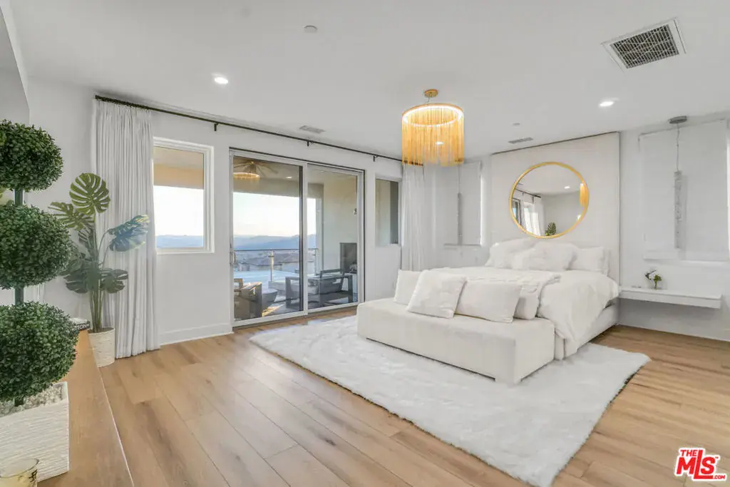 Welcome to this remarkable fully furnished luxury estate nestled in the desirable Westcliffe community of Porter Ranch Hills. The design elements work harmoniously to create inviting spaces that cater to both casual family gatherings and formal entertaining. With high-end finishes, spacious layouts, and thoughtful amenities, every corner of this estate is curated for an elevated lifestyle, ensuring that residents and guests alike can enjoy both luxury and comfort in equal measure. As you approach the property, you are greeted by an impressive facade that hints at the elegance within. Upon entering, you’ll be captivated by the grand open-concept layout, featuring soaring high ceilings that showcase all three levels in which creates a sense of spaciousness and grandeur. The expansive oversized stacking doors of this estate create an impressive connection between the indoor and outdoor spaces. They not only flood the interiors with natural light, enhancing the ambiance of each room, but also beautifully frame the stunning panoramic views of the cityscape and majestic mountains. This feature not only enriches the aesthetic appeal but also provides a picturesque backdrop for everyday living, making each moment spent in the home feel special and serene. From high-quality flooring to exquisite cabinetry and designer light fixtures, every detail has been thoughtfully curated to create a cohesive and luxurious atmosphere. The gourmet kitchen, which boasts an oversized island that serves as gathering place, equipped with top-of-the-line appliances WOLF/SUBZERO, sleek quartz countertops, and an abundance of storage, this kitchen is perfect for culinary enthusiasts and hosts alike. Retreat to the luxurious primary suite, a private oasis that features breathtaking views, a cozy outdoor patio complete with a fireplace for those chilly evenings, and an opulent bathroom designed for relaxation and a spacious walk-in shower. Each of the spacious bedrooms has been thoughtfully designed to ensure comfort and privacy, with generous closet space and easy access to beautifully upgraded bathrooms. Step outside to discover your own resort-style backyard, where the pool and spa provide the ultimate in leisure and relaxation. For those who enjoy cinematic experiences, the private theater room is an inviting space to enjoy movies and shows in comfort. Fitness enthusiasts will appreciate a room for a gym, while those needing a dedicated workspace will find the elegant office area inspiring and functional. The spacious third level of this luxury estate is designed for next-level entertaining, making it an ideal space for hosting friends and family, with it’s own private bathroom, this area adds convenience and functionality, allowing guests to enjoy themselves without needing to access the main living spaces. The stacking doors open up seamlessly to a balcony where you can unwind while taking in the stunning views of the city lights, creating an enchanting atmosphere for evening gatherings. Whether it’s a lively game night or a quiet evening of relaxation, this versatile space enhances the overall appeal of the home. This luxurious estate comes with over $350,000 worth of exquisite furniture, elevating the home’s aesthetic and comfort. The gold furniture features 18k plating and silver plating, adding a touch of opulence to the contemporary design. To enhance the living experience, an alkaline water system has been installed under the kitchen sink, providing high-quality drinking water and solar panel. The hand-sewn drapes are a unique touch, softening the contemporary style and creating a cozy atmosphere that contrasts with the often sterile look of modern design. This estate is truly a one-of-a-kind opportunity. Schedule a private tour today!