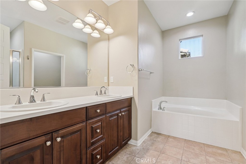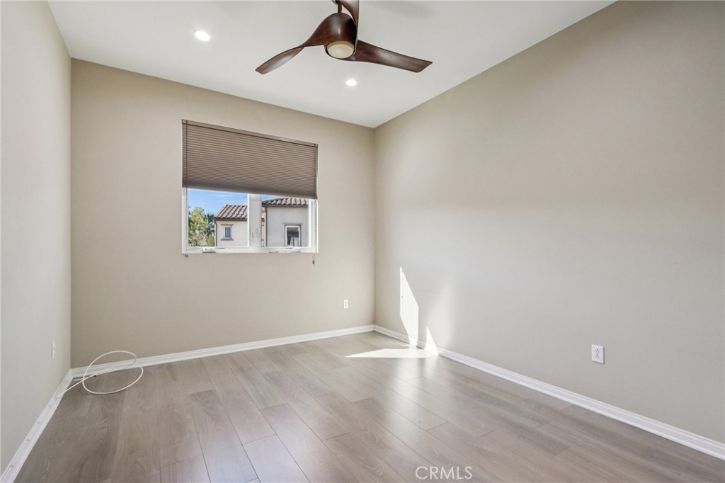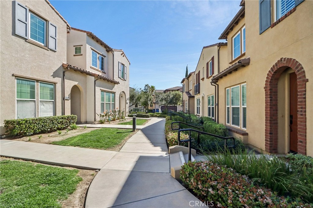 GUARD GATED ALDEA COMMUNITY! This is your chance to live in the resort-like Aldea community. Enter through your own private courtyard into a formal entryway with coat closet and direct access to a 2-car garage. Once upstairs you walk into a large, open floorplan with new laminate floors, high ceilings, recessed lighting, and new paint. The kitchen has plenty of counter space with a large island, and upgraded Smart GE appliances! The primary suite has a large walk-in closet and a spacious bathroom with a large soaking tub and separate shower. The oversized windows give beautiful views and tons of sunlight. Your laundry room is conveniently located directly outside of the master bedroom for easy access! The large second bedroom is perfect for a guest room, or office. Each room has high-end Minka ceiling fans, there’s a Nest thermostat, and the house is wired for an EV charger in the garage. This community has a resort-like pool/spa area, and a guard. It sits next to the brand-new Vineyards shopping center with Whole Foods, Lure, AMC, gyms, and more!