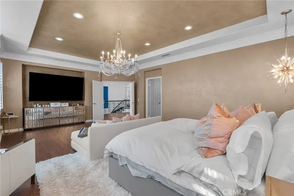 Experience refined luxury in this highly upgraded 5-bedroom, 5-bathroom estate located in the prestigious 24-hour guard-gated Renaissance community of Porter Ranch. Spanning 4,550 square feet, this expansive residence has been thoughtfully enhanced and is presented in immaculate, move-in-ready condition with elevated finishes throughout.
