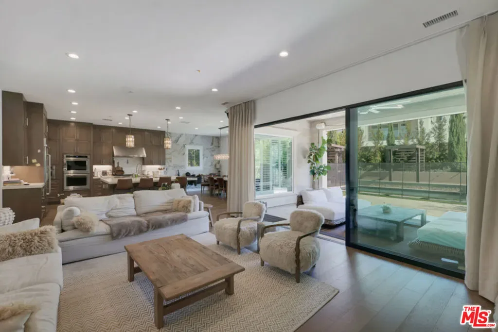 Experience elevated living in the prestigious Hillcrest community of Porter Ranch, featuring a 24-hour guard-gated entrance. Nestled on a quiet cul-de-sac, this modern 5-bedroom residence offers the perfect blend of comfort, style, and functionality ideal for both everyday living and entertaining. The resort-style backyard is a true showstopper, complete with an expansive linear pool, outdoor kitchen, fire pit, pergola, and multiple seating areas all designed for seamless indoor-outdoor living. Floor-to-ceiling stacking doors create effortless flow between the interior and exterior spaces.Inside, you’ll find a custom dining room with built-in cabinetry and an elegant open-concept layout. The chef’s kitchen is equipped with high-end KitchenAid stainless steel appliances, a spacious eat-in island, and a charming breakfast nook, all opening to a grand great room with soaring 12-foot ceilings. The main level includes a full bedroom and bathroom, a modern spiral staircase, and direct access to the two-car garage.Upstairs, the expansive primary suite offers a private balcony and extended sitting area. The spa-inspired bathroom features dual vanities with designer stone countertops, a glass-enclosed shower, and a separate soaking tub. Three additional bedrooms, a generous laundry room, and a versatile loft complete the second level. Located within walking distance to top-rated Porter Ranch Community School, the new 50-acre Porter Ranch Park, scenic hiking trails, shopping, dining, AMC theater, and Sierra Canyon School. This exceptional home will be move-in ready by May 1 don’t miss this rare opportunity.