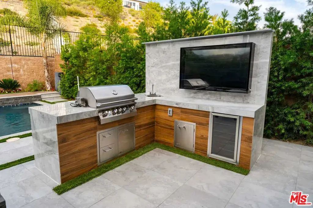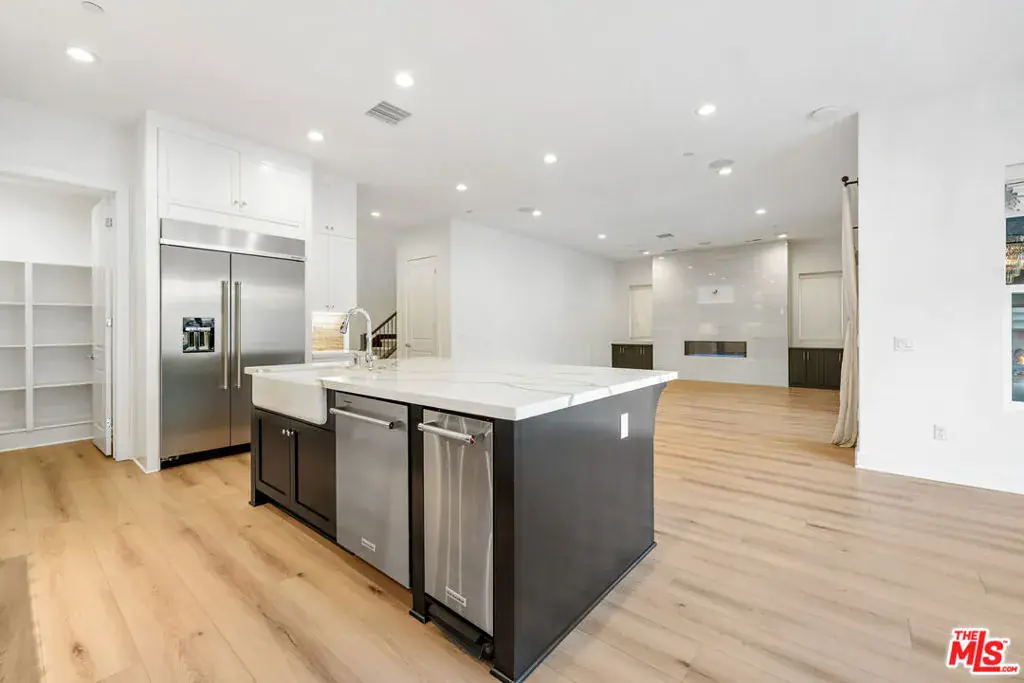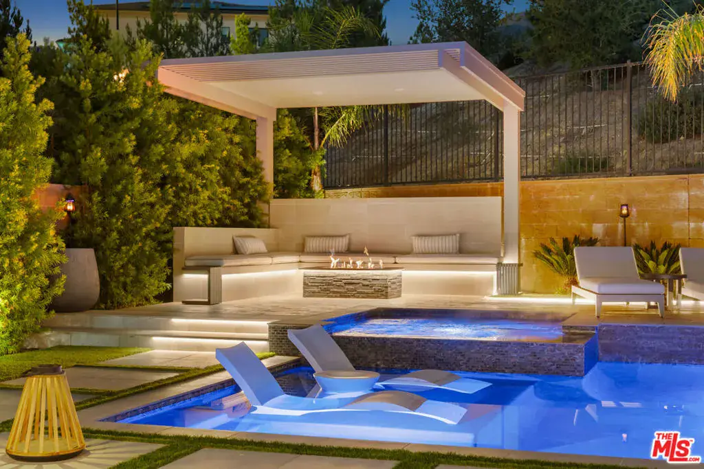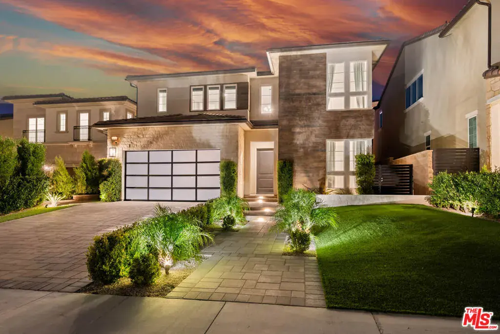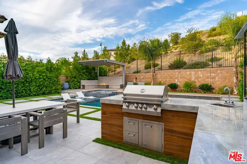 Introducing a rare opportunity in the prestigious guard-gated community of Hillcrest, a stunning 2022 build that blends luxury, comfort, and designer-level upgrades in every corner. Located on a quiet cul-de-sac with exceptional privacy, this home is in impeccable, move-in ready condition and lives like a modern resort. Step into an open, light-filled interior where the heart of the home is the chef-inspired kitchen, complete with a built-in refrigerator, side-by-side ovens, a 6-burner cooktop with griddle, a 48″ proffesional vent hood, a large center island, and a walk-in pantry. The kitchen flows seamlessly into the family room, which highlights a sleek cosmo fireplace, custom wall treatment, and custom built-ins, and then expands outward through large stackable sliding glass doors to the extraordinary backyard. The outdoor living spaces are a true showpiece: a new Pebble Fina pool and spa, a built-in BBQ center with outdoor TV, a pergola with a gas firepit, and a covered outdoor lounge with its own fireplace. This stunning backyard is designed for year-round relaxation and entertaining. Inside, the first floor offers an expanded bedroom suite, ideal for flexible living needs. The first level also includes an extra bonus room – ideal for a home office or gym. Upstairs, the primary suite impresses with a massive walk-in closet featuring custom built-ins, and a spa-style bathroom with dual vanities, a free-standing soaking tub, and a spacious walk-in shower. The upper level also boasts a generous loft space, delivering additional versatility. A finished 2-car garage outfitted with a car charging station, custom cabinets and epoxy flooring adds convenience and style. Located in one of Porter Ranch’s most sought-after gated enclaves, this residence offers a rare blend of luxury, privacy, and contemporary design, and is located just moments from Porter Ranch Community School, Porter Ranch Community Park, equestrian and hiking trails, The Vineyards shopping center, and Porter Ranch Town Center. This is the BEST of Hillcrest!