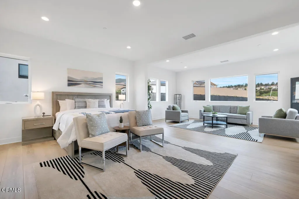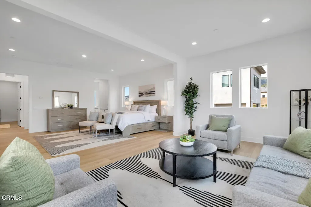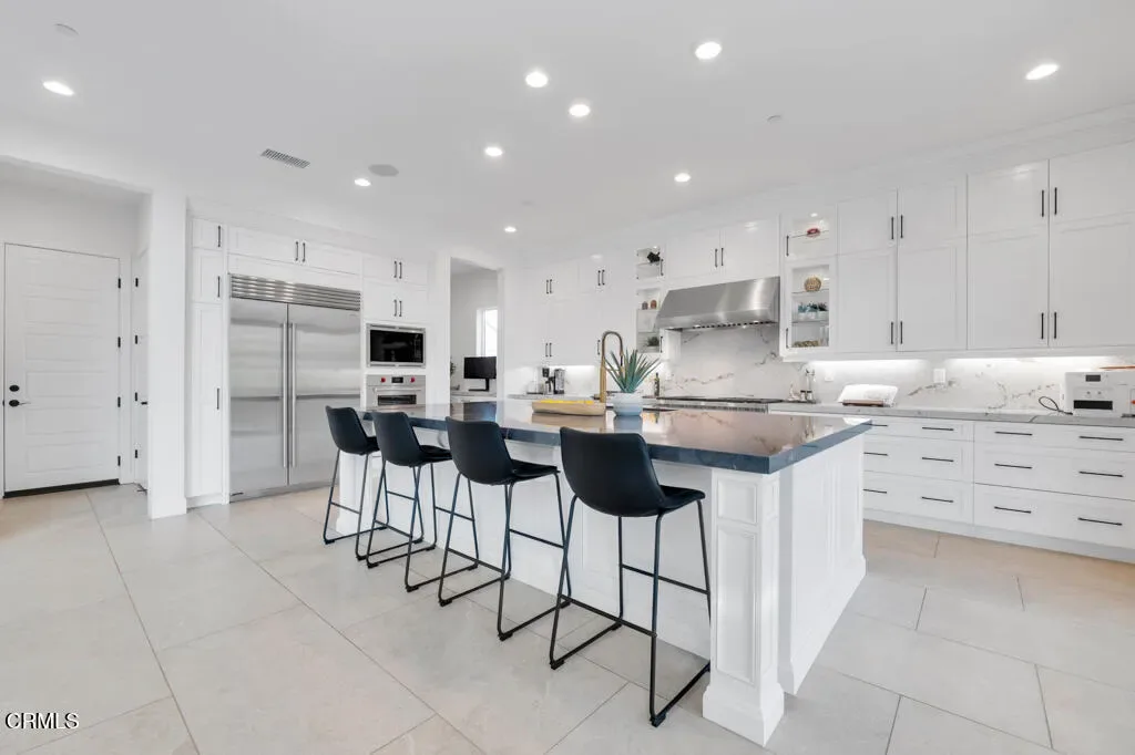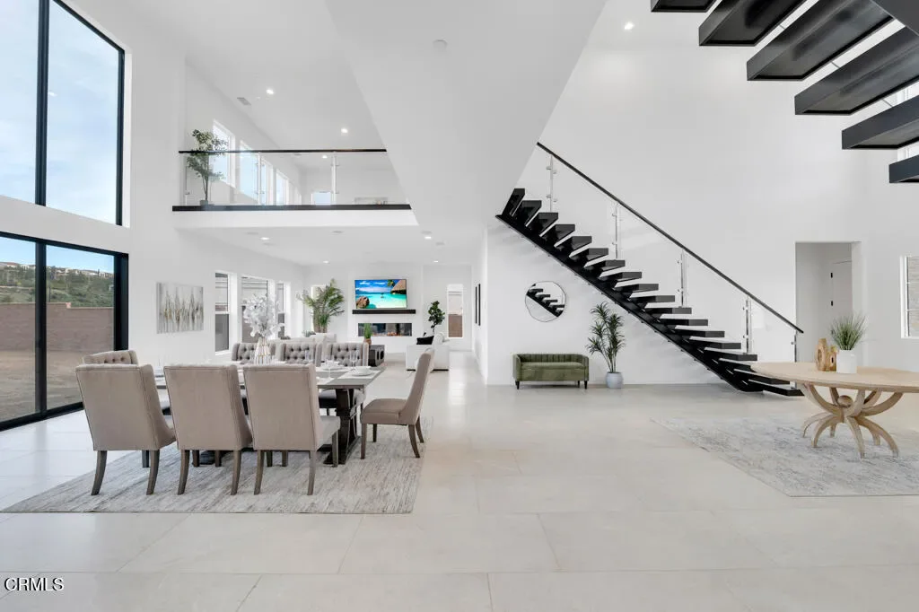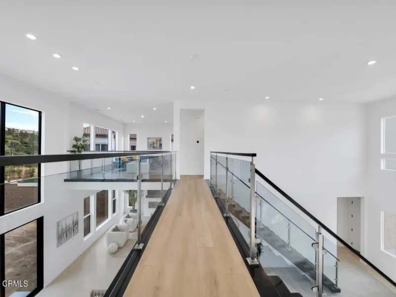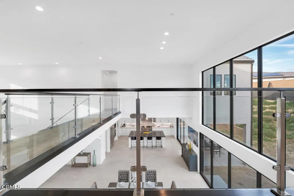MOVE IN READY and over 500K in UPGRADES!Located in The Ridge at Bella Vista, this stunning home captures the essence of modern California living and makes an unforgettable first impression. From the moment you step through the covered entry and double doors, the home exudes luxury and is filled with natural light, soaring ceilings, and architectural drama that immediately set the tone.Understandably, the Idylwild is the most sought after floorplan with striking dual floating staircases and glass handrails that anchor the dramatic two-story foyer, while expansive, high-end glass wall systems flood the living spaces with warm light and open seamlessly to the outdoors, creating true indoor-outdoor living. The gourmet kitchen is a showpiece, seamlessly blending stunning design with exceptional functionality. Anchored by a large center island with gorgeous upgraded Cosentino quartz countertops and breakfast bar, it features upper cabinetry, a butler’s pantry, a 48-inch Wolf professional range, and a Sub-Zero built-in refrigerator–an absolute chef’s dream. Flowing effortlessly from the kitchen, the expansive dining space and great room balance sophistication and comfort with a sleek designer fireplace and an upgraded home-theater system with surround sound.The primary suite is a true retreat, thoughtfully upgraded with the coveted owner’s retreat option, a spacious walk-in closet, and a spa-inspired bath with dual vanities, a soaking tub, and an oversized deluxe shower. Secondary bedrooms are equally well appointed, each with en-suite bathrooms featuring upgraded finishes for style, comfort, and privacy.Additional highlights include a versatile flex space off the foyer, a desirable first-floor bedroom suite with private bath, a drop zone, centrally located laundry, generous storage, and an additional upstairs family room. Throughout the home, thoughtful upgrades and smart-home enhancements add both comfort and convenience, while added features such as a built-in security system, premium interior insulation, a carefully selected lighting package, and solar further elevate the property. All of this is set on a spacious, private lot with sunrise views and distance from neighbors within one of Porter Ranch’s most coveted neighborhoods.Conveniently located near award-winning schools, a newly developed 50-acre community park, and The Vineyards shopping destination, which offers an upscale, boutique-style mix of restaurants, cafes, and specialty grocery stores