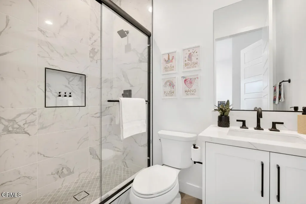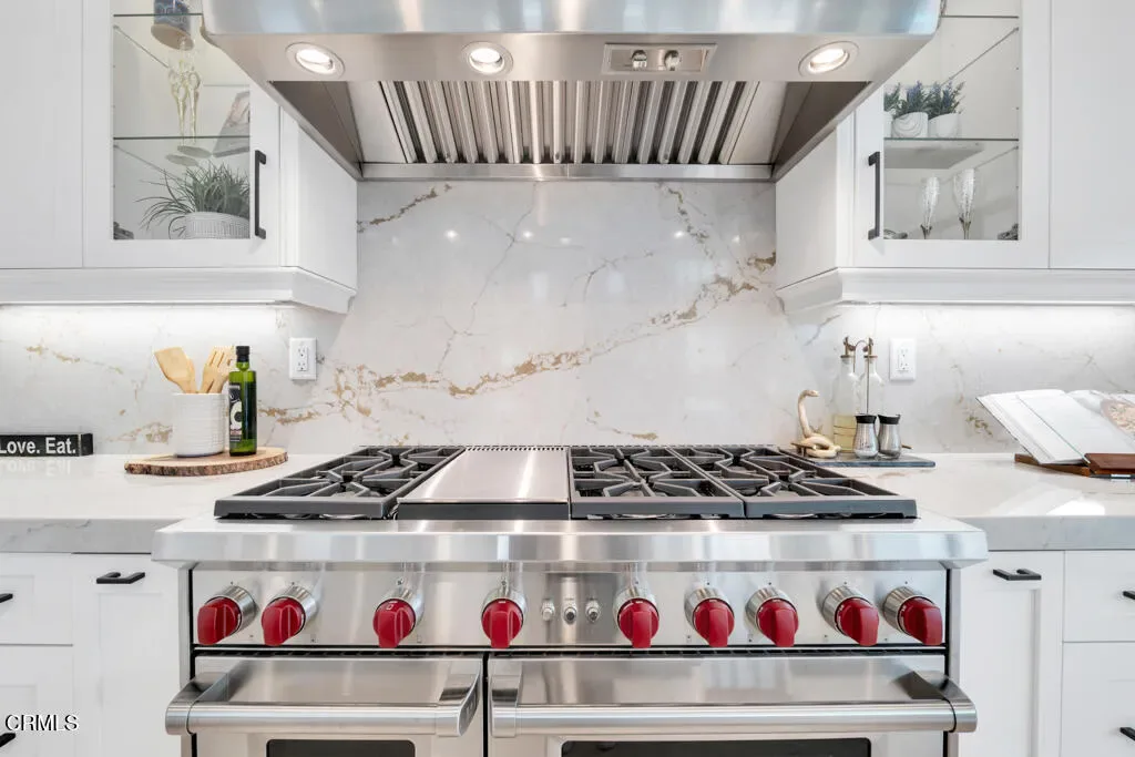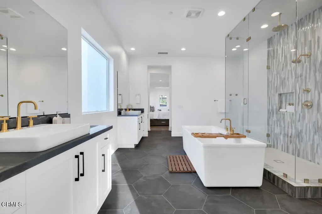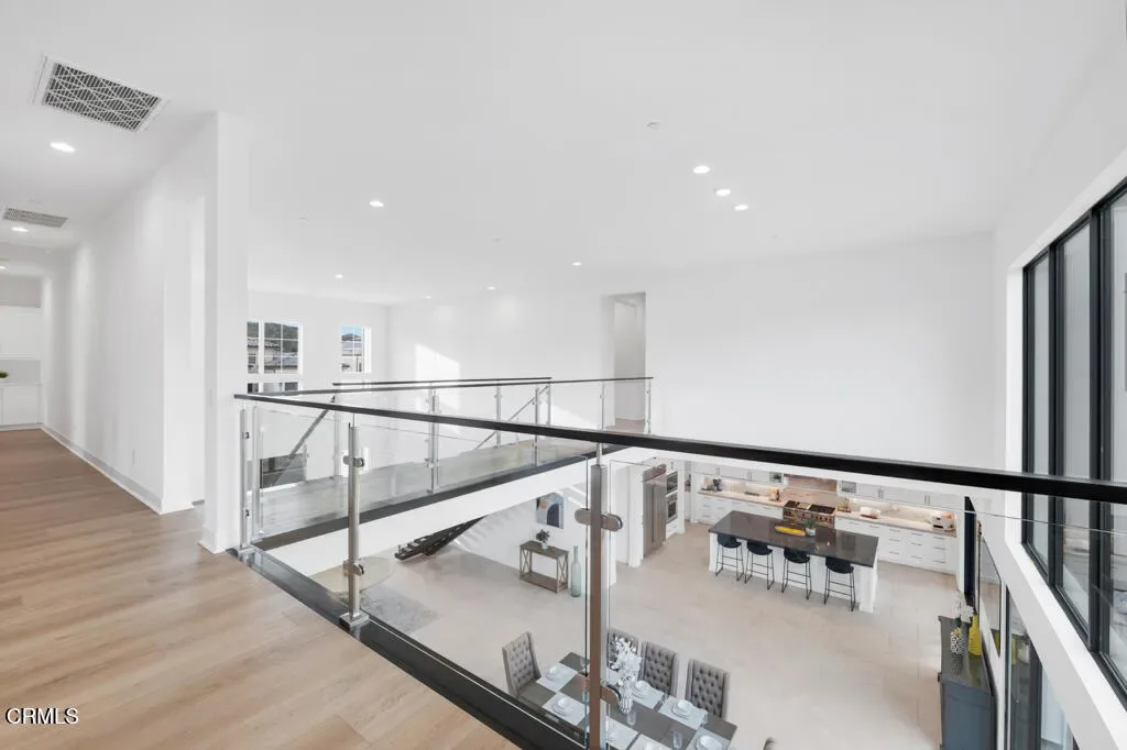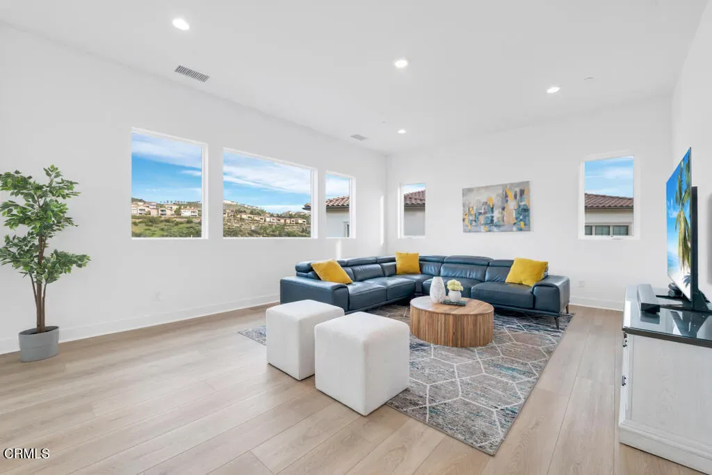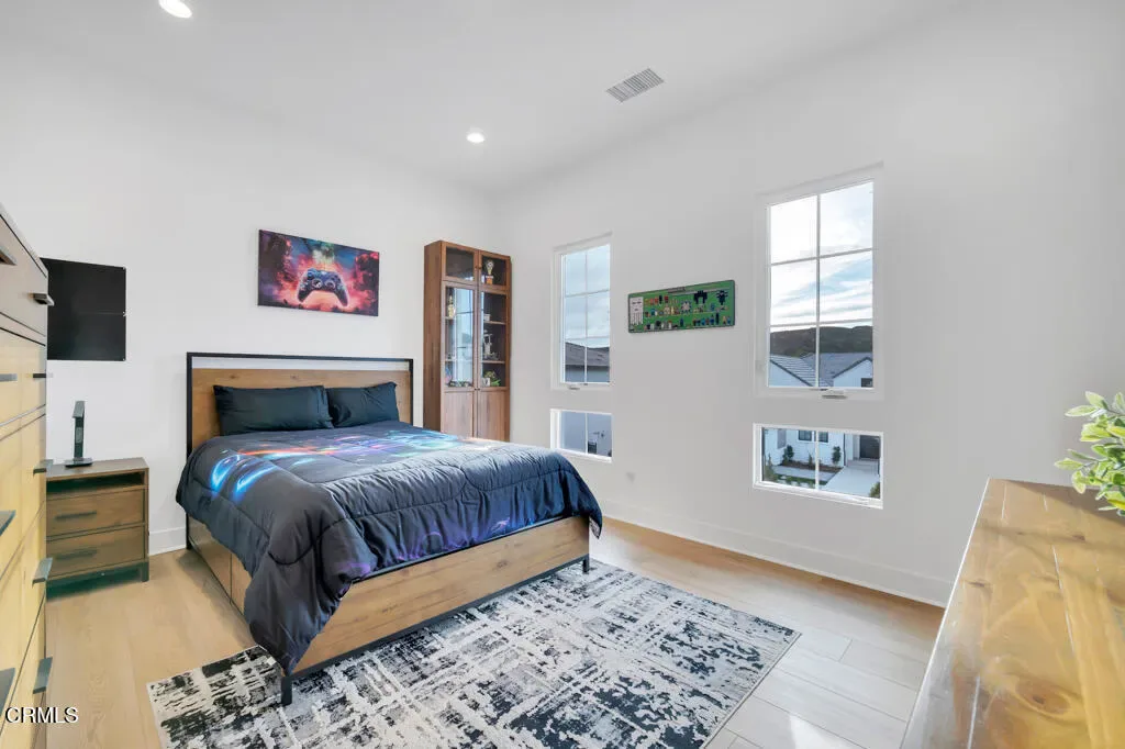 MOVE IN READY and over 500K in UPGRADES!Located in The Ridge at Bella Vista, this stunning home captures the essence of modern California living and makes an unforgettable first impression. From the moment you step through the covered entry and double doors, the home exudes luxury and is filled with natural light, soaring ceilings, and architectural drama that immediately set the tone.Understandably, the Idylwild is the most sought after floorplan with striking dual floating staircases and glass handrails that anchor the dramatic two-story foyer, while expansive, high-end glass wall systems flood the living spaces with warm light and open seamlessly to the outdoors, creating true indoor-outdoor living. The gourmet kitchen is a showpiece, seamlessly blending stunning design with exceptional functionality. Anchored by a large center island with gorgeous upgraded Cosentino quartz countertops and breakfast bar, it features upper cabinetry, a butler’s pantry, a 48-inch Wolf professional range, and a Sub-Zero built-in refrigerator–an absolute chef’s dream. Flowing effortlessly from the kitchen, the expansive dining space and great room balance sophistication and comfort with a sleek designer fireplace and an upgraded home-theater system with surround sound.The primary suite is a true retreat, thoughtfully upgraded with the coveted owner’s retreat option, a spacious walk-in closet, and a spa-inspired bath with dual vanities, a soaking tub, and an oversized deluxe shower. Secondary bedrooms are equally well appointed, each with en-suite bathrooms featuring upgraded finishes for style, comfort, and privacy.Additional highlights include a versatile flex space off the foyer, a desirable first-floor bedroom suite with private bath, a drop zone, centrally located laundry, generous storage, and an additional upstairs family room. Throughout the home, thoughtful upgrades and smart-home enhancements add both comfort and convenience, while added features such as a built-in security system, premium interior insulation, a carefully selected lighting package, and solar further elevate the property. All of this is set on a spacious, private lot with sunrise views and distance from neighbors within one of Porter Ranch’s most coveted neighborhoods.Conveniently located near award-winning schools, a newly developed 50-acre community park, and The Vineyards shopping destination, which offers an upscale, boutique-style mix of restaurants, cafes, and specialty grocery stores