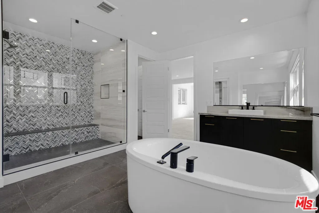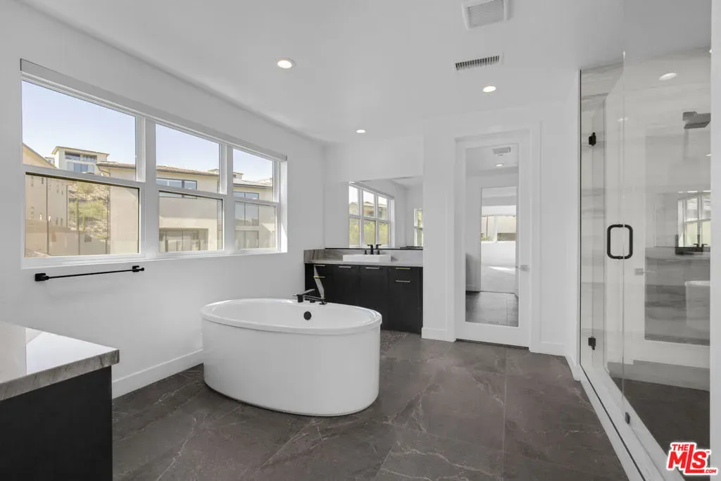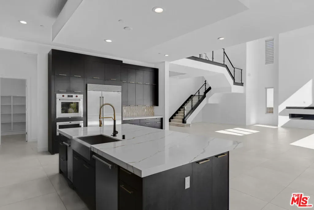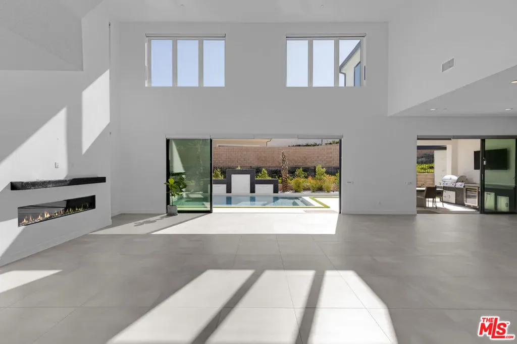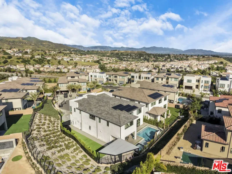 Ultra-Modern Two-Story Estate in Westcliffe, Porter Ranch. This extraordinary residence showcases the highly sought-after Santi floor plan from the prestigious Summit Collection in Porter Ranch’s exclusive guard-gated Westcliffe community. Set on a private cul-de-sac and positioned on an oversized flat lot high in the hills, this spectacular estate offers luxury, privacy, and sophistication at every turn. This stunning open-concept home spans approximately 5,400 sq ft and features 5 bedrooms, 6 bathrooms, a spacious loft, flex space, and private office. What truly sets this estate apart is its unique location, expansive lot size, and incredible indoor-outdoor lifestyle. From the moment you enter, you’re greeted by a majestic foyer with a dramatic glass staircase and exceptional designer finishes throughout. The home is filled with natural light, enhanced by expansive glass doors and oversized windows, showcasing the beautiful modern color palette and seamless flow. Highlights include stone tile flooring throughout the main level, an oversized great room with a striking 72-inch modern fireplace with color-changing crystals, and a showstopping chef’s kitchen with a massive stone island, stone countertops, and top-of-the-line Sub-Zero and Wolf appliances. Elevating the living experience even further, the home is equipped with built-in speakers throughout for a seamless audio experience, electric window shades and owned solar panels.The luxurious primary suite is a true retreat, featuring a spacious sitting area, colossal walk-in closet, dressing area, and an exceptional spa-inspired designer bathroom. All four secondary bedrooms are ensuite, including one conveniently located on the first floor. Additional versatile spaces include an office/media room and fitness gym.Step outside to your own private resort. The spectacular backyard is designed for elevated entertaining and everyday enjoyment, complete with a luxury designer pool and jacuzzi, custom pergola creating the ultimate outdoor lounge..perfect for enjoying a movie under the stars or hosting unforgettable game nights in a resort-style setting, outdoor BBQ, large side area.. an expansive wraparound yard with ample space to relax, host, and enjoy the best of Southern California living. There is also generous parking space, adding to the home’s rare functionality and appeal.Located in one of Porter Ranch’s most affluent and sought-after communities, Westcliffe offers newly built luxury estates behind a guarded gate entrance. This prime location is just moments from The Vineyards at Porter Ranch, featuring Whole Foods, AMC luxury theater, Nordstrom Rack, fine dining, award-winning schools, and convenient access to the 118 freeway. Be sure to check out the virtual walkthrough video of this exceptional home.