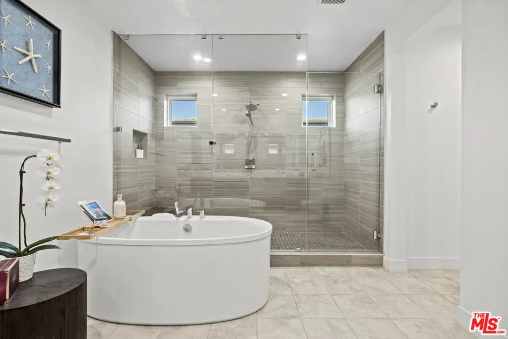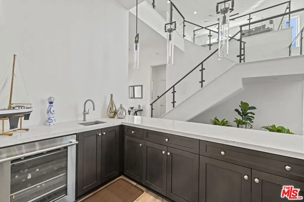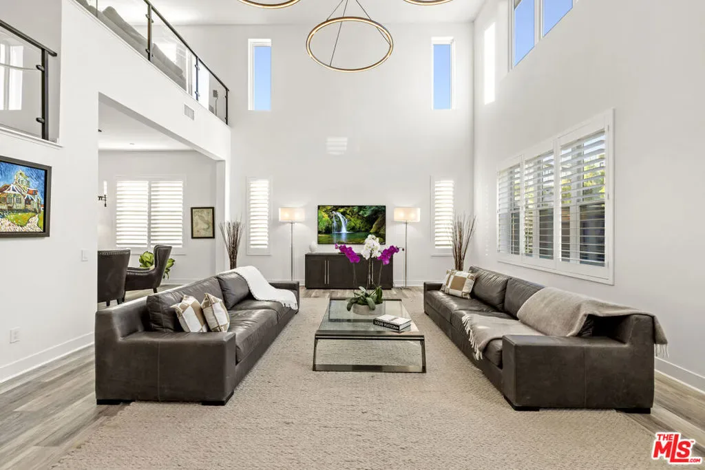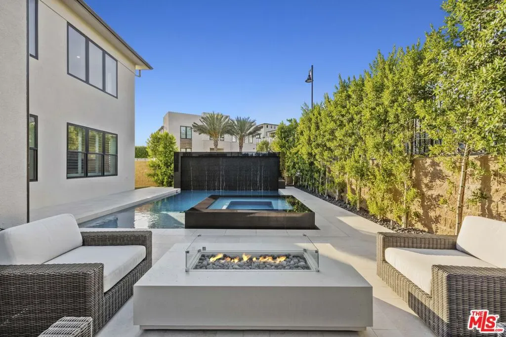 Stunning Ultra-Modern Estate in the exclusive 24-hour guard-gated community of Westcliffe in Porter Ranch Hills. Built in 2022 and situated on a coveted corner lot, this 5-bedroom, 6-bath estate with office, loft, and flex space showcases timeless upgrades, sleek design, and comes with custom designer lighting making it a true turnkey home.Upon entering through the majestic solid wood and glass front door, you’re welcomed by soaring 24-foot ceilings and a bright, open floor plan that feels like a private oasis. Expansive windows and large stackable doors flood the Great Room and chef’s kitchen with natural light, creating a seamless indoor-outdoor flow. The gourmet kitchen features designer appliances, a large stone island, quartz counters, and a full wet bar perfect for entertaining. The first level also offers a versatile office/media room, a flex space ideal for a gym, plus a guest bedroom and full bath.Upstairs, the luxurious Primary Suite serves as a retreat, complete with a spa-inspired bathroom featuring dual vanities, a rain shower, and spa-like soaking tub. Four additional bedrooms and a flexible loft complete the second floor. Designed for resort-style living, the entertainer’s backyard is a true showpiece featuring a sparkling pool and spa, a dramatic water wall feature, fire pit, and a fully equipped outdoor kitchen with stainless-steel BBQ and a custom Taj Mahal stone island, perfect for serving cocktails or hosting al fresco dinners. Multiple lounging and dining areas, manicured landscaping, and a vegetable garden complete this private oasis.This estate is also equipped with a fully integrated smart home system and owned solar panels, combining modern luxury with energy efficiency. With a two-car garage, high-end finishes throughout, and the rare offering of a fully furnished turnkey lifestyle, this residence perfectly blends modern architecture with the best of California luxury living.Conveniently located near The Vineyards shopping center, Whole Foods, AMC, award-winning schools, and easy access to the 118 freeway, this is a rare opportunity to own one of Porter Ranch’s most prestigious and breathtaking estates. Conveniently located near The Vineyards shopping center, Whole Foods, AMC, award-winning schools, and the 118 freeway, this is a rare opportunity to own one of Porter Ranch’s most prestigious and breathtaking estates.