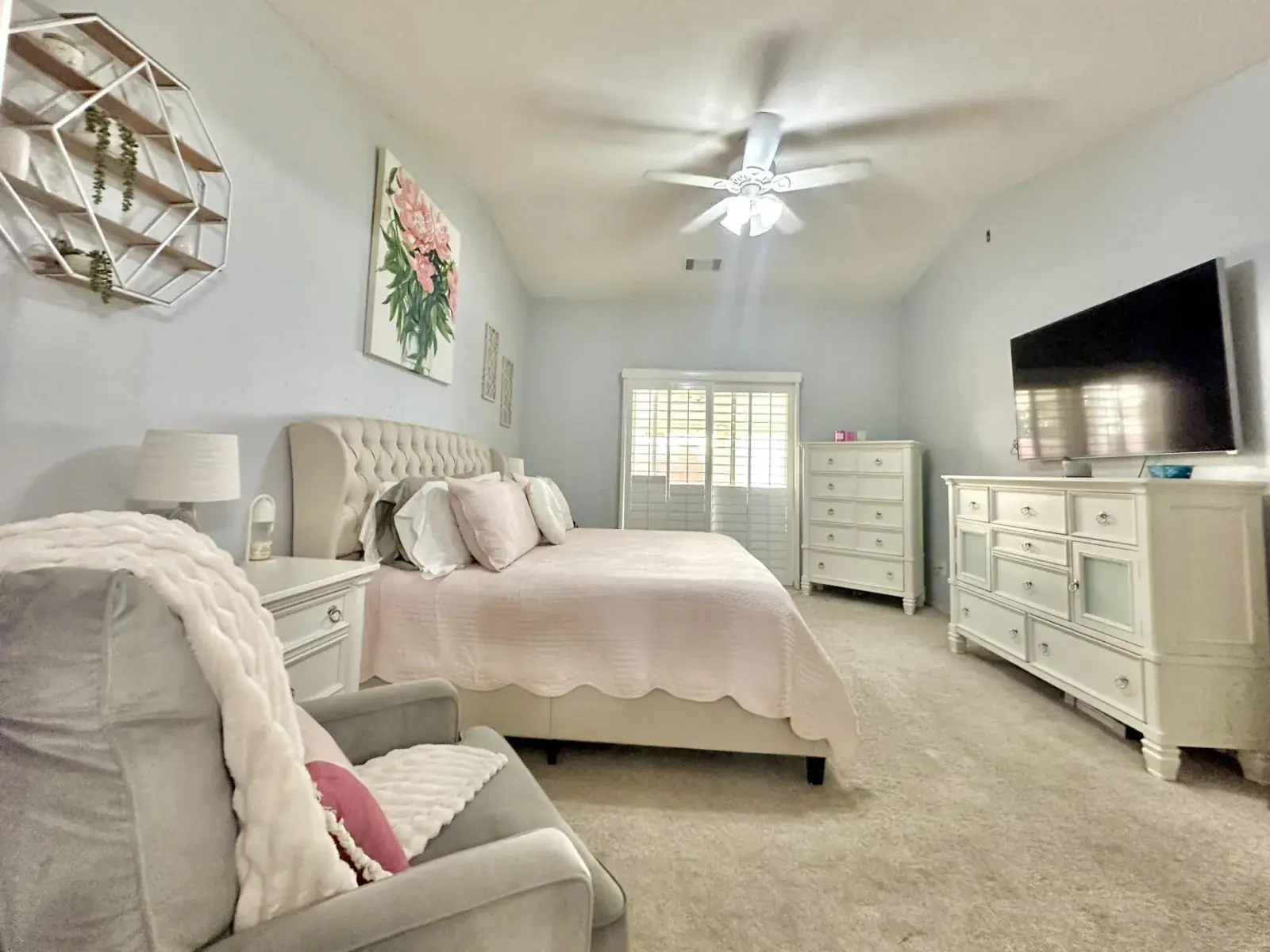 Upon entering, you’ll appreciate a spacious living room perfect for relaxation or entertainment. A well-designed kitchen with an adjacent dining area is ideal for hosting holiday gatherings. The master bedroom, separated by a split floor plan, provides optimal privacy. Additionally, a convenient indoor laundry room is available.