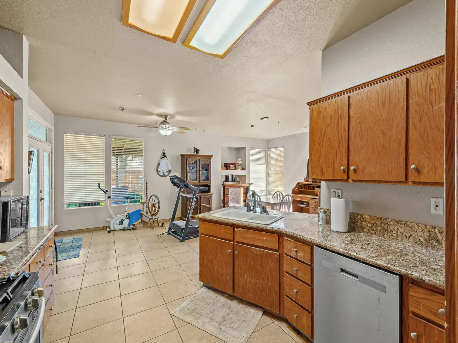 Room For All – Corner Lot – This home offers 5 bedrooms, 2 bathrooms with accessible showers. A home office with a separate entrance or use it as a Sixth Bedroom! Kitchen is open to dining and family room, plus there is a separate living room. French door access to back patio and yard from both family room and primary bedroom. Home has a fire alarm and sprinkler system installed and is located close to town, shopping & schools.