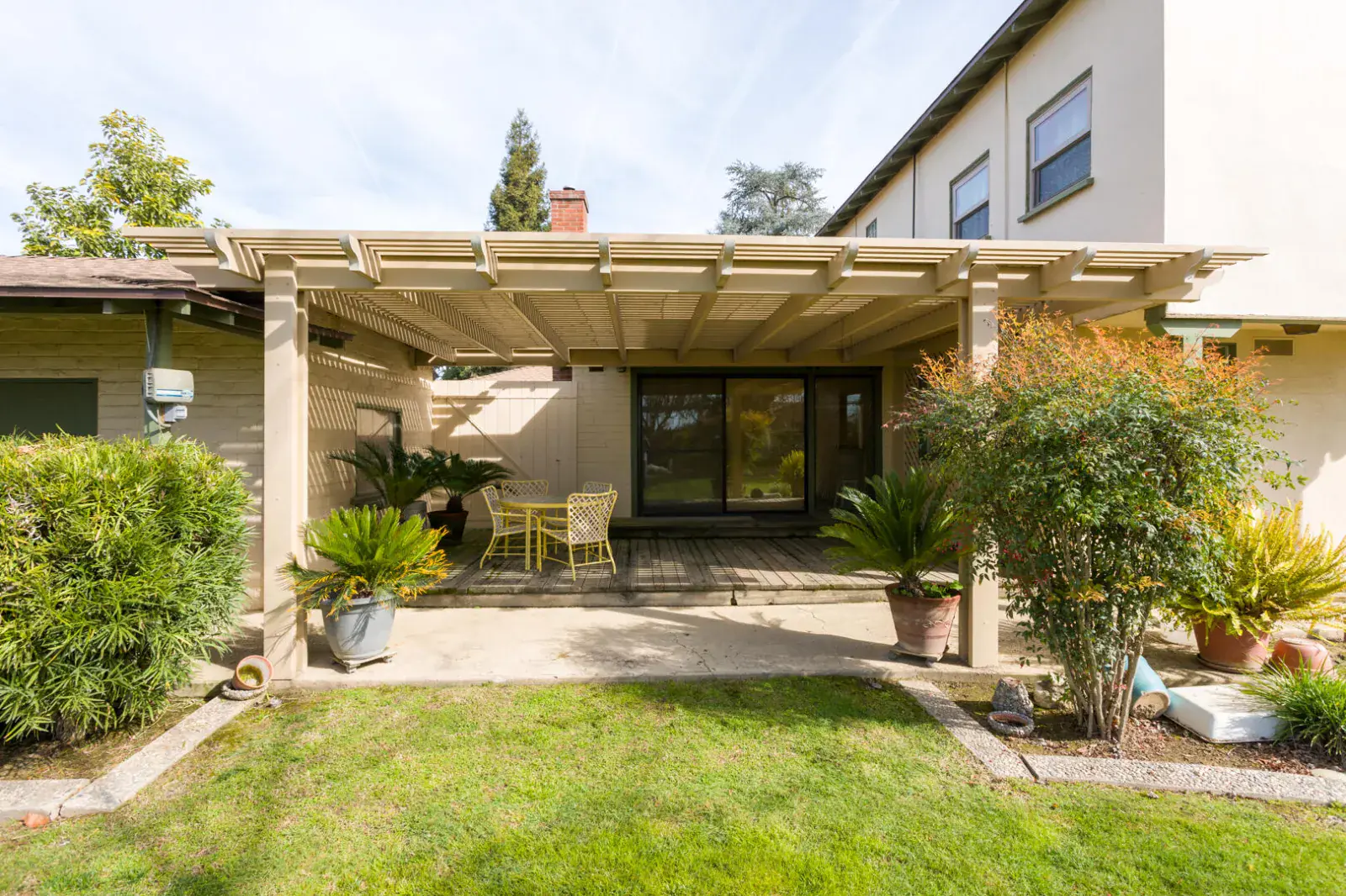 HOBBY FARM HOME ON 3+ ACRES HAS ROOM FOR YOUR FLEET OF CARS, BOATS, EQUIPMENT & EVERY HOBBY USE YOUR FAMILY PURSUES.EAST OPEN LAND IS READY FOR YOUR NEW CORRALS, PASTURE, PENS, ORCHARD, BEE HIVES & ANIMAL HUSBANDRY PORTERVILLE IS FAMOUS FOR. THE WATER IS SHALLOW & THE SOIL IS RICH. INCREDIBLE MATURE TREE CANOPY THAT COVERS THE ENTIRE FRONT, REAR & SIDE YARDS. BEAUTIFUL LANDSCAPING SURROUNDS THE HOME. LARGE LIVING ROOM W/ GAS LOG FIREPLACE BELOW MANTLE & IS OPEN TO THE FORMAL DINING AREA.ADJACENT TO THE KITCHEN WHICH WAS DESIGNED FOR A COOK, W/ WRAP AROUND + ISLAND CORIAN COUNTER TOPS, DOUBLE ELECTRIC OVENS(ONE A CONVECTION), 3 CORNER LAZY SUSANS, RESURFACED CABINETRY, PULL OUT LOWER DRAWERS,A 4′ LONG BUTCHER BLOCK CUTTING BOARD THAT PULLS TO EITHER SIDE OF THE ISLAND.STAND-UP COOKIE SHEET STORAGE ABOVE STOVES,& FLOOR-CEILING PANTRY.FRIDGE IS ON A PLATFORM TOO. CASUAL DINING ROOM OPEN TO A COFFEE BAR & KITCHEN.DEN FEATURES WETBAR W/ WINE RACKS& 2ND GAS LOG FIREPLACE W/ RAISED HEARTH & MANTLE,FLANKED BY BUILT IN BOOK SHELVES+ BUILT IN OFFICE DESK W/ DRAWERS & CABINET ORGANIZER. MASTER BEDROOM DOWNSTAIRS W/ 3 WARDROBE CLOSETS +A WALK IN CLOSET W/ CEDAR TRIM, TONS OF STORAGE, & SPACIOUS 3/4 BATH W/ SEAT, DOUBLE SINKS, & PRIVATE TOILET WATER CLOSET. OVERSIZED LAUNDRY ROOM W/ FREE STANDING SINK,ALSO HAS 3/4 BATH MUD ROOM W/ACCESS TO REAR YARD. TWO BEDROOMS UPSTAIRS W/ ANOTHER 3/4 BATH & 2ND HVAC.VERY NICE REAR YARD FACING PATIO ACCESSED FROM DEN. NEXT TO THE REAR YARD PATIO IS 3 SIDE BY SIDE CLOSET DOORS=15’x30′ (450 SQFT) OF MATCHING CONCRETE BLOCK.30’X100′ BUILDING WITH 3 GARAGE ROLL UP DOORS, HOUSES A 22′ GARAGE & 44′ ADJACENT SHOP BOTH ON SLAB, & A 38′ WIDE STORAGE/SHOP, PLUS ADJACENT 30’x78′ COVERED CARPORT PARKING. SOUTH EDGE IS A 40’X125′ EQUIPMENT UTILITY STORAGE CARPORT W/ FIVE 25′ BAYS. SMALL OUTDOOR RECEIVING OFFICE 15’X15′ ON THE APRON.