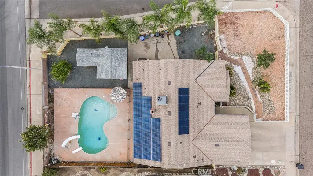 Pride of ownership shines in this beautiful home featuring a charming white picket fence and a low-maintenance yard. Offering 3 bedrooms, 2 bathrooms, this home boasts an open-floor plan with a cozy gas fireplace, new carpet in the living room and slider leading to the patio overlooking the pool. The kitchen offers plenty of cabinets and granite countertops. Indoor laundry is equipped with more storage. Large primary suite with a slider to the backyard. The ensuite feels like a private oasis, featuring dual sinks, lots of counter space, enclosed glass shower and a relaxing jetted tub, and a spacious walk-in closet. The backyard is perfect for entertaining, complete with a large, covered patio and a fenced pool with a slide and diving board. Plus, there’s a bonus—a detached ADU with 1 bedroom and 1 bathroom and owned/leased solar! All situated on a large corner lot, this home is a must-see!