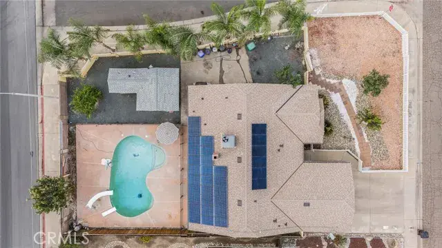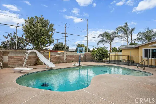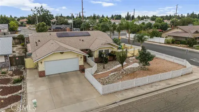 Pride of ownership shines in this beautiful home featuring a charming white picket fence and a low-maintenance yard. Offering 3 bedrooms, 2 bathrooms, this home boasts an open-floor plan with a cozy gas fireplace, new carpet in the living room and slider leading to the patio overlooking the pool. The kitchen offers plenty of cabinets and granite countertops. Indoor laundry is equipped with more storage. Large primary suite with a slider to the backyard. The ensuite feels like a private oasis, featuring dual sinks, lots of counter space, enclosed glass shower and a relaxing jetted tub, and a spacious walk-in closet. The backyard is perfect for entertaining, complete with a large, covered patio and a fenced pool with a slide and diving board. Plus, there’s a bonus—a detached ADU with 1 bedroom and 1 bathroom and owned/leased solar! All situated on a large corner lot, this home is a must-see!