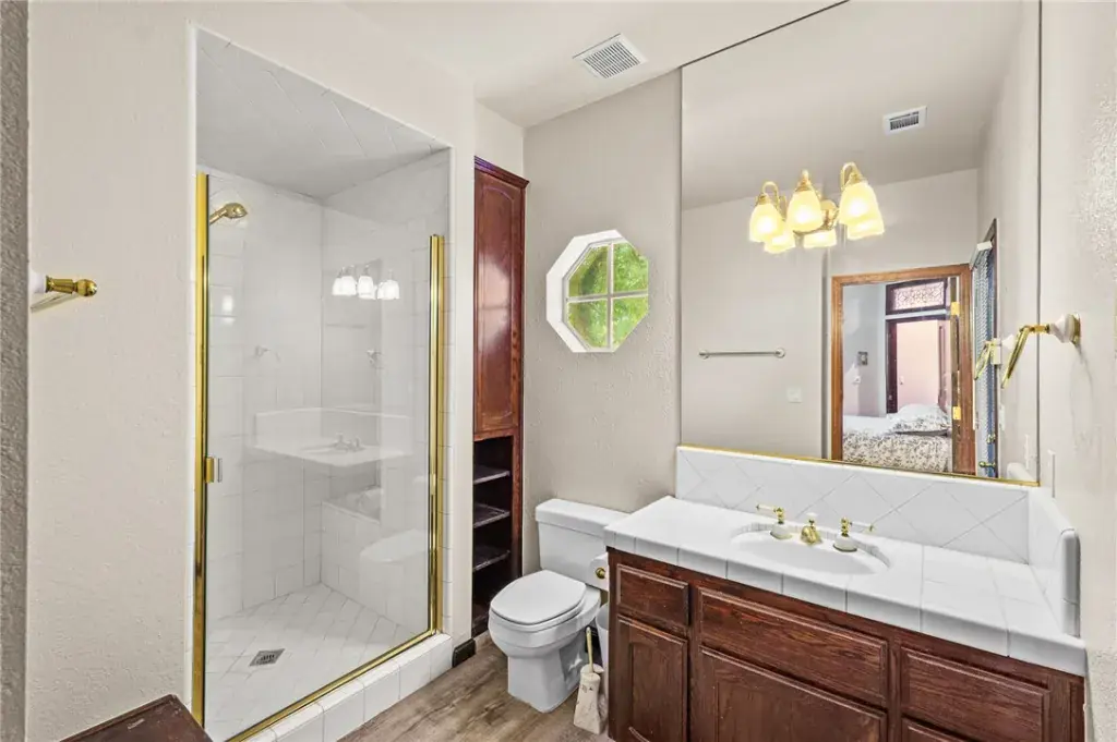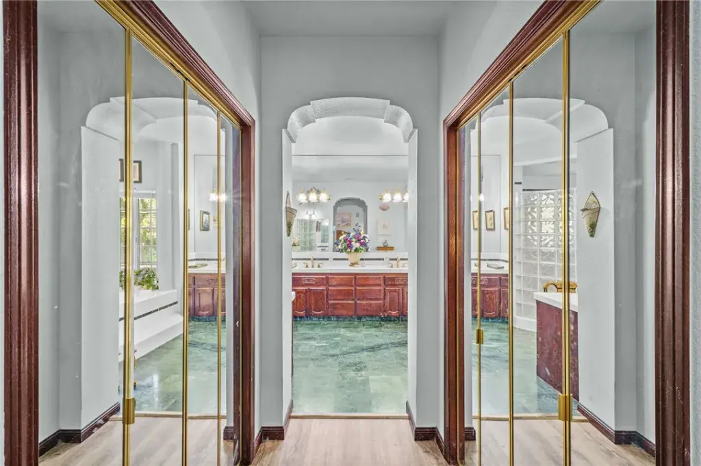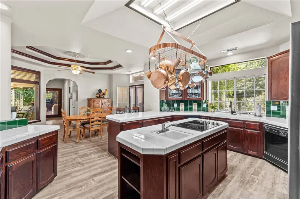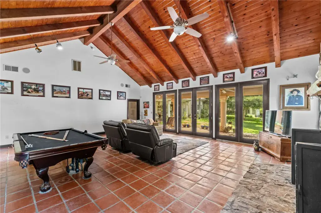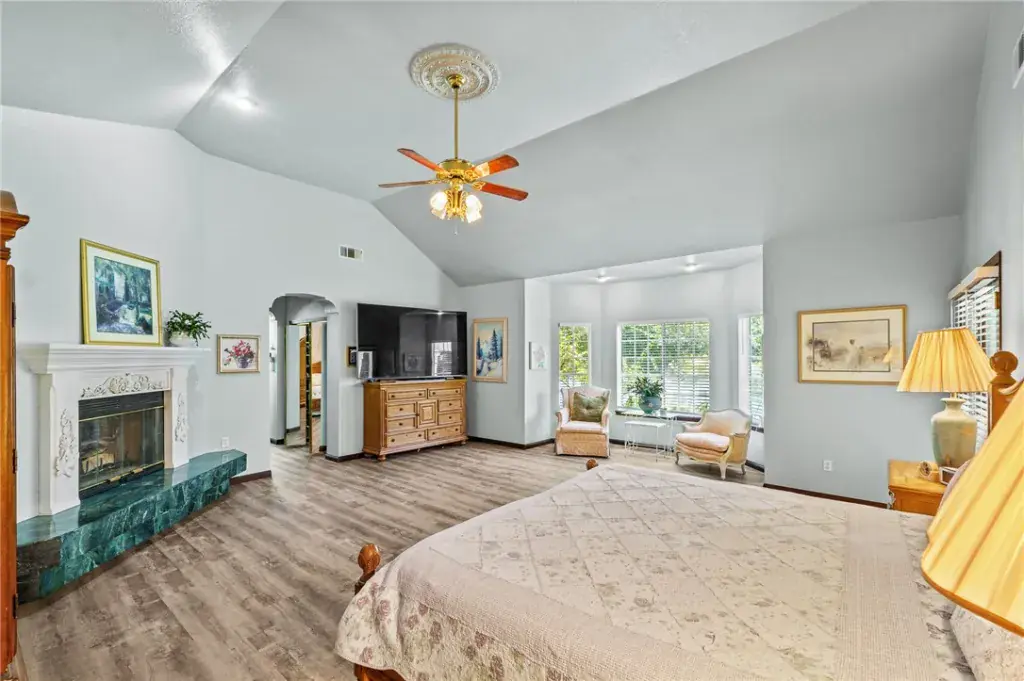 Inside, the main residence dazzles with bright interiors that highlight tray ceilings, statement fireplaces, and expansive glass windows that usher in natural light. With four spacious bedrooms and four well-appointed bathrooms, this home is designed for both family living and entertaining.