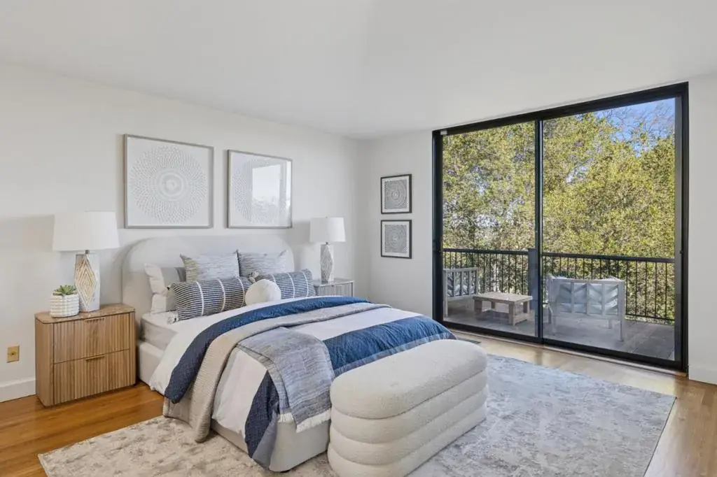 Set in the tranquil Portola Valley Ranch with breathtaking views, this magnificent home blends architectural elegance with stunning natural surroundings. An open floor plan and walls of glass frame sweeping vistas of rolling hills and the Bay, with sightlines reaching San Francisco and Oakland. Multiple expansive decks, two spanning the full width of the home offer exceptional spaces for entertaining or relaxation. The main level features a grand entry illuminated by a dramatic skylight, leading to a striking LR/DR w/ soaring vaulted ceilings, skylights, FP, and a hidden bar. The light-filled eat-in kit, centered around an oversized oval island and SS appliances, opens directly to an al fresco dining deck. Also on the main level is a spacious bedroom w/ skylight and glass slider to a private deck, along with an elegant bath. The luxurious primary suite provides a serene retreat with its own FP, balcony, and WIC. An open staircase leads to the lower level, where a gorgeous FR w/ FP opens to a covered deck w/ expansive views. This level also includes a dedicated office, two full baths, laundry rm, and generous storage. With its thoughtful design and awe-inspiring setting, this home offers a rare opportunity for refined living in one of the Bay Areas most coveted communities.