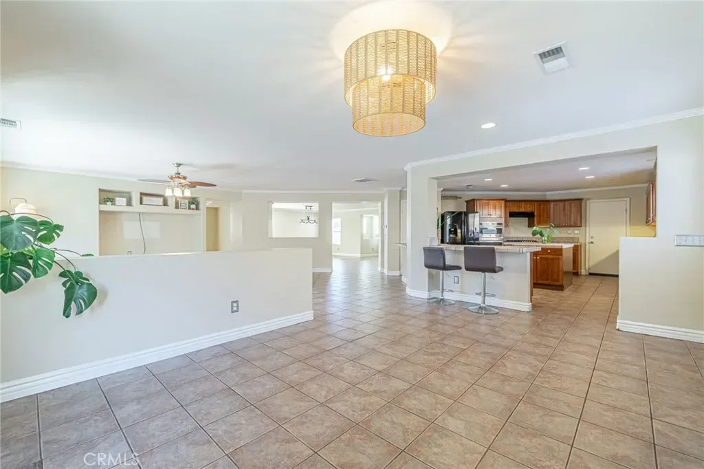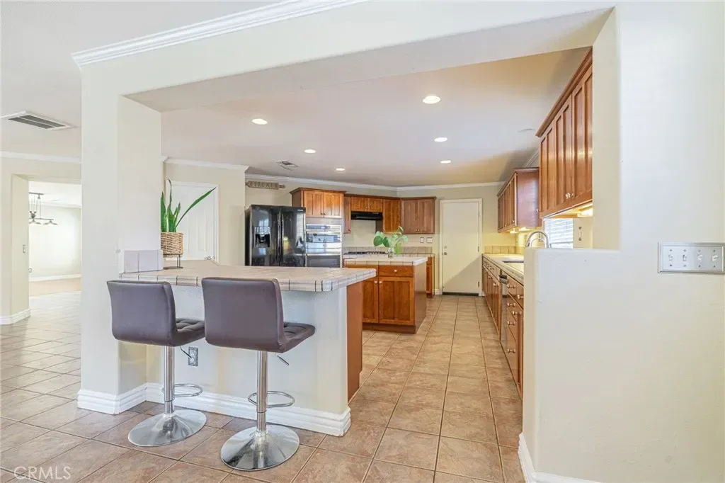 Inside, enjoy a bright open layout with a large living room, spacious family room, elegant trim details, crown molding, and abundant natural light. The kitchen provides generous cabinet storage, a center island, walk-in pantry, and an extended breakfast bar perfect for gatherings. A downstairs office/flex room adds versatility and can function as a potential fifth bedroom, making the layout ideal for extended family living.