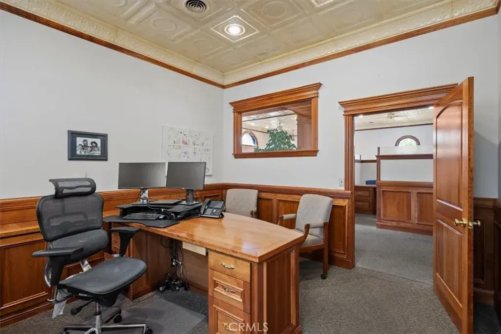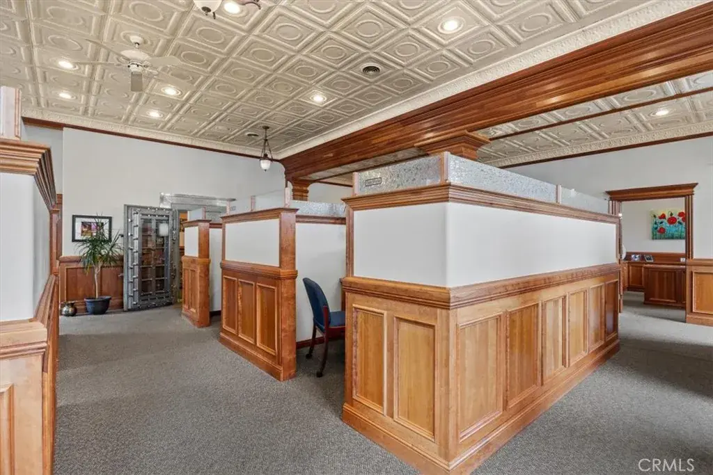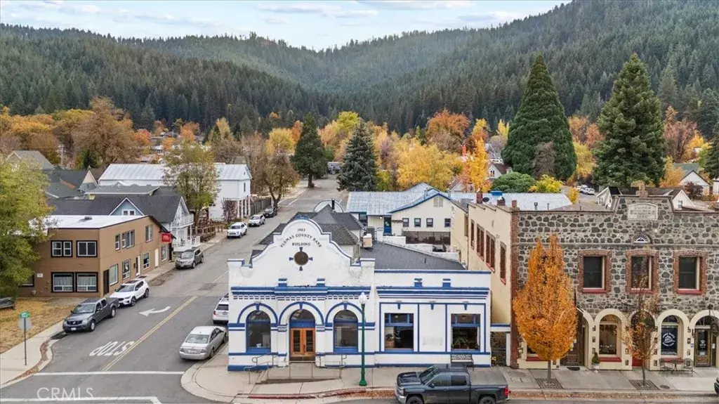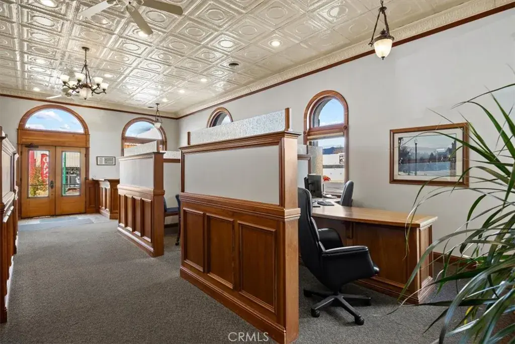 Discover your dream workspace or distinguished investment opportunity in this exquisite and historic office building, located in the heart of downtown Quincy, California. Originally the Plumas County Bank Building built in 1903 and most recently the Flanigan & Leavitt Insurance Agency. Spanning two meticulously designed floors, this property offers the perfect blend of functionality and aesthetic appeal. The ground floor boasts two private grand offices, 5 office cubicle spaces, a reception desk with night deposit vault, 2 bathrooms, historic bank vault and conference room complete with a kitchenette. These spaces are versatile and flanked with first class finishes. The ornate ceilings, rich wood trim, and abundant natural light create an ambiance of sophistication and warmth while embracing the buildings history and central downtown location. Large windows frame picturesque views of downtown, infusing each room with energy and life. The exquisite upstairs area, with its exposed brick wall and unique circular window, offers a delightful retreat for brainstorming sessions, casual meetings or entertaining. Upstairs there is an additional kitchenette, storage/IT room, and utility room that boasts the central heating and cooling system, on demand water heater, and automatic changeover generator that keeps the entire building online in the event of a power outage. Modern amenities seamlessly integrate with the building’s historic character, ensuring comfort and efficiency in the workspace. The grand staircase and original 1904 bank vault serve as stunning and historic centerpieces. The corner lot building is flanked with a paved 9 space parking lot and ample street parking. It is conveniently located 1 block from the Plumas County Courthouse as well as being next door to dining, entertainment and lodging options. This property isn’t just an office; it’s a statement of success and a canvas for your professional aspirations. Located in the heart of Quincy, CA, it offers the perfect balance of small-town charm, business functionality, and presence. Embrace the opportunity to elevate your work environment and inspire your team in a truly exceptional space. Your journey to professional excellence begins here, at 400 Main Street, where every detail has been thoughtfully curated for over a century to support your vision and drive your success and legacy forward. The opportunity for investment in this building is currently supported by a strong lease through 2030.