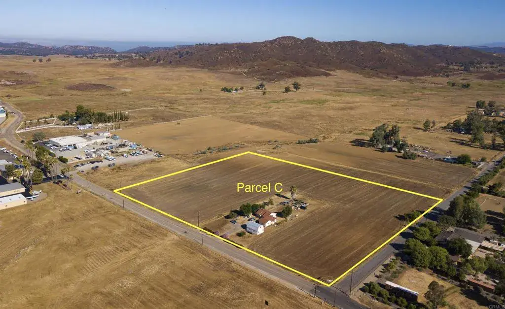 RE/MAX Direct is exclusively offering Parcel C, one of two (2) legal industrial parcels being brought to market, representing a rare opportunity to acquire ±8.27 acres of M54 General Impact Industrial–zoned land—one of the most scarce and highly sought-after industrial zoning designations in Southern California, notably permitting outdoor storage by right. Strategically located at the hard corner of Montecito Road and Montecito Way and directly across the street from Ramona Airport (KRNM), the property offers exceptional frontage, convenient access, and proximity to major state highways SR 67 (Main Street) and SR 78. The property is serviced by multiple water meters, an on-site water well, and electric service to the parcel. Improvements include a ±1,118 SF single-family residence, allowing for interim income, on-site management, or future redevelopment consistent with industrial use. Parcel C is being marketed individually and in conjunction with adjacent Parcel D (±7.66 acres, same zoning), offering buyers the flexibility to acquire one or both legal parcels for expanded scale, circulation, or phased development. Ideal uses include manufacturing, industrial operations, outdoor storage, fleet storage, recycling, self-storage, packing, and processing, subject to County approvals.