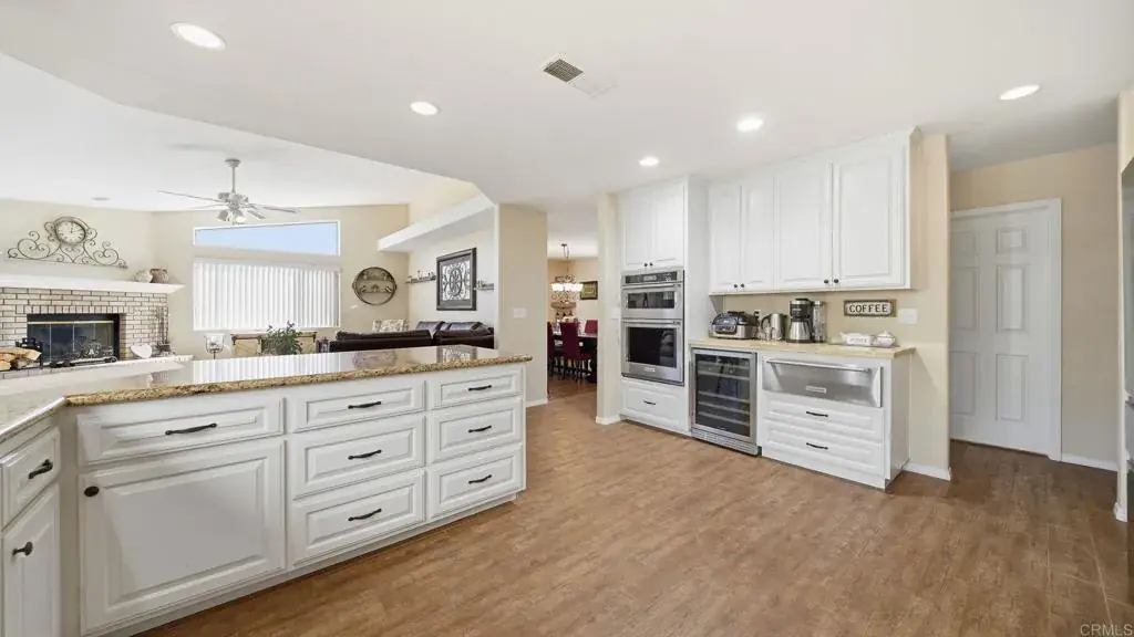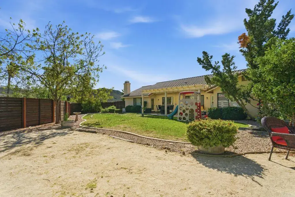 Beautiful single-story home on an elevated corner lot in San Diego Country Estates, offering stunning mountain views from bright, open living spaces. The heart of the home is a fully upgraded, custom kitchen featuring a ZLINE cooktop, built-in wall unit with microwave, convection oven, dual-zone wine refrigerator, warming drawer, and butcher block prep station. The kitchen opens to a spacious family room with brick fireplace and vaulted ceilings, creating the perfect space for everyday living and entertaining. The private backyard is ideal for relaxing and hosting, complete with fruit trees and an Alumawood pergola. The home offers four spacious bedrooms, including a primary suite with French doors and wood-look tile flooring, plus a laundry room with custom storage. Major upgrades include a new roof (May 2024), solar system with backup battery, and a comprehensive private well filtration and treatment system with nitrate removal, water softening, UV protection, and reverse osmosis drinking water — providing high-quality water with no monthly water bill. Additional improvements include new perimeter fencing and gates. Residents enjoy resort-style community amenities, including two pools (one heated year-round), pickleball and tennis courts, multi-sport courts, and children’s parks. Miles of nearby hiking and equestrian trails, along with a covered picnic pavilion and stage for summer Concerts in the Park, complete the lifestyle experience. This is turnkey living, energy-efficient, and lifestyle-driven — all in one exceptional home.